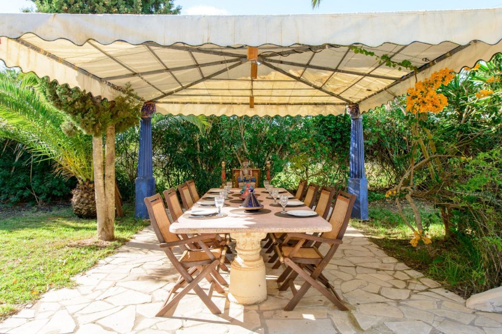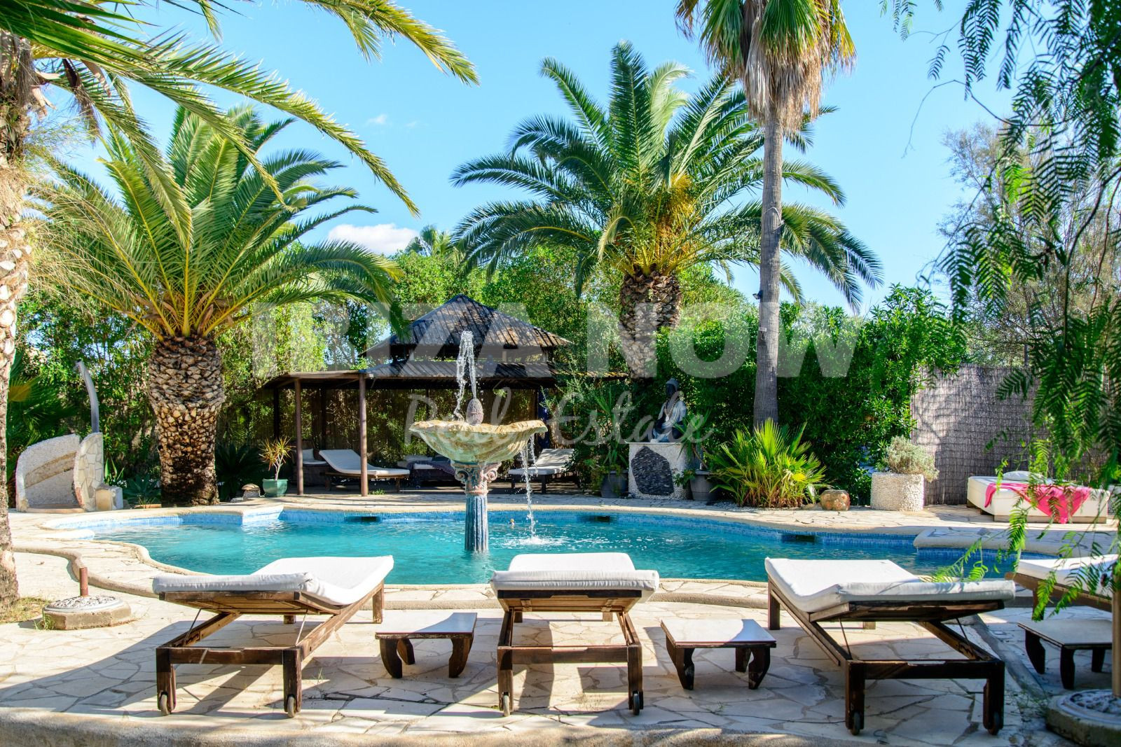 This centrally located 5-bedroom villa with a rental license. Situated just a short drive from various beaches, including Sa Caleta, Cala Yondal, and Salinas, this villa boasts a 2030m2 plot. The 350m2 house features 5 bedrooms and 4 bathrooms, with spacious rooms that invite abundant natural light and seamless connections to outdoor spaces. Amenities include central heating, hot and cold air conditioning, an outdoor shower, heated jacuzzi, large swimming pool, outdoor kitchen with barbecue area, rainwater deposit, solar panels, garage, and an additional annex. To learn more or schedule a viewing, please contact us.