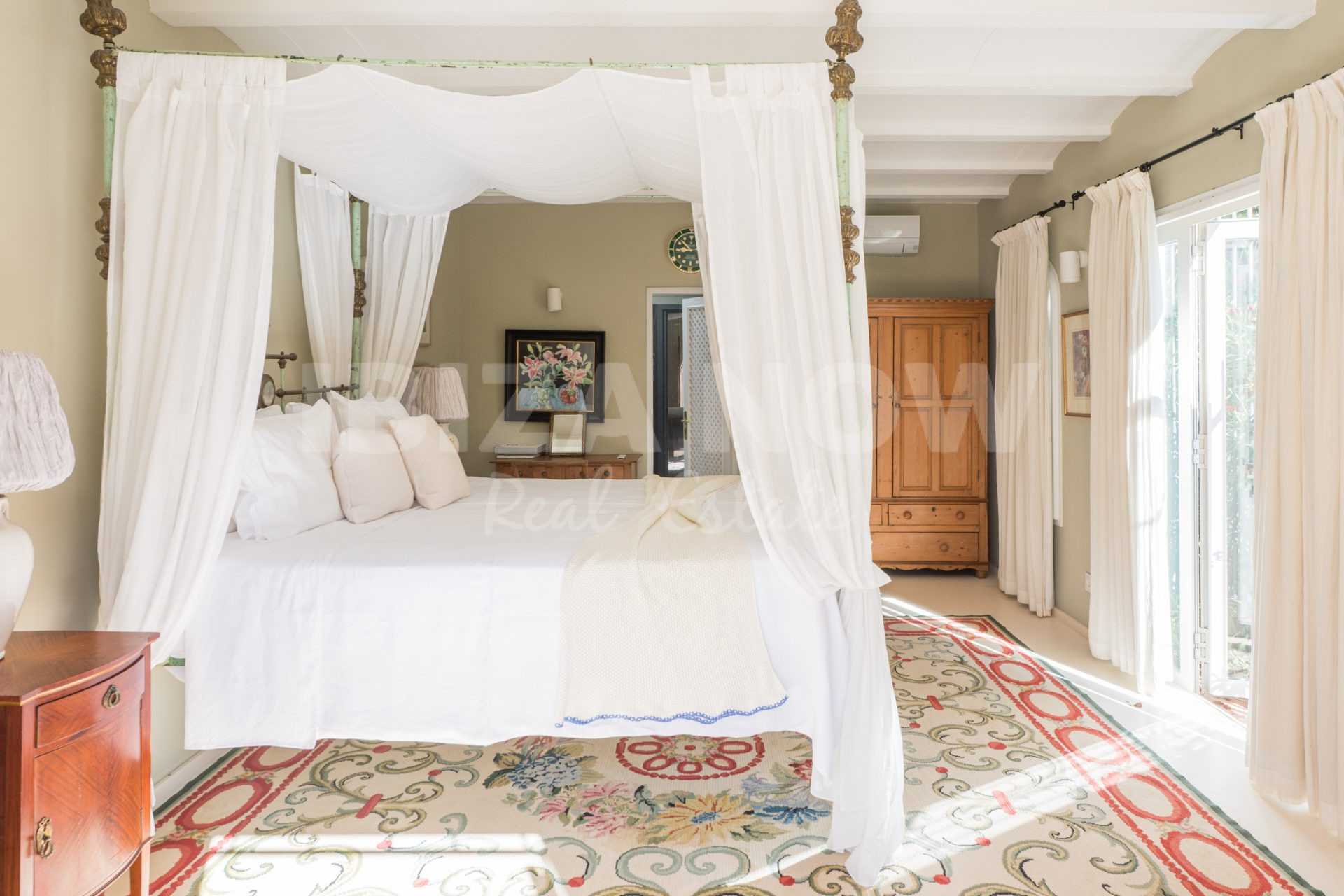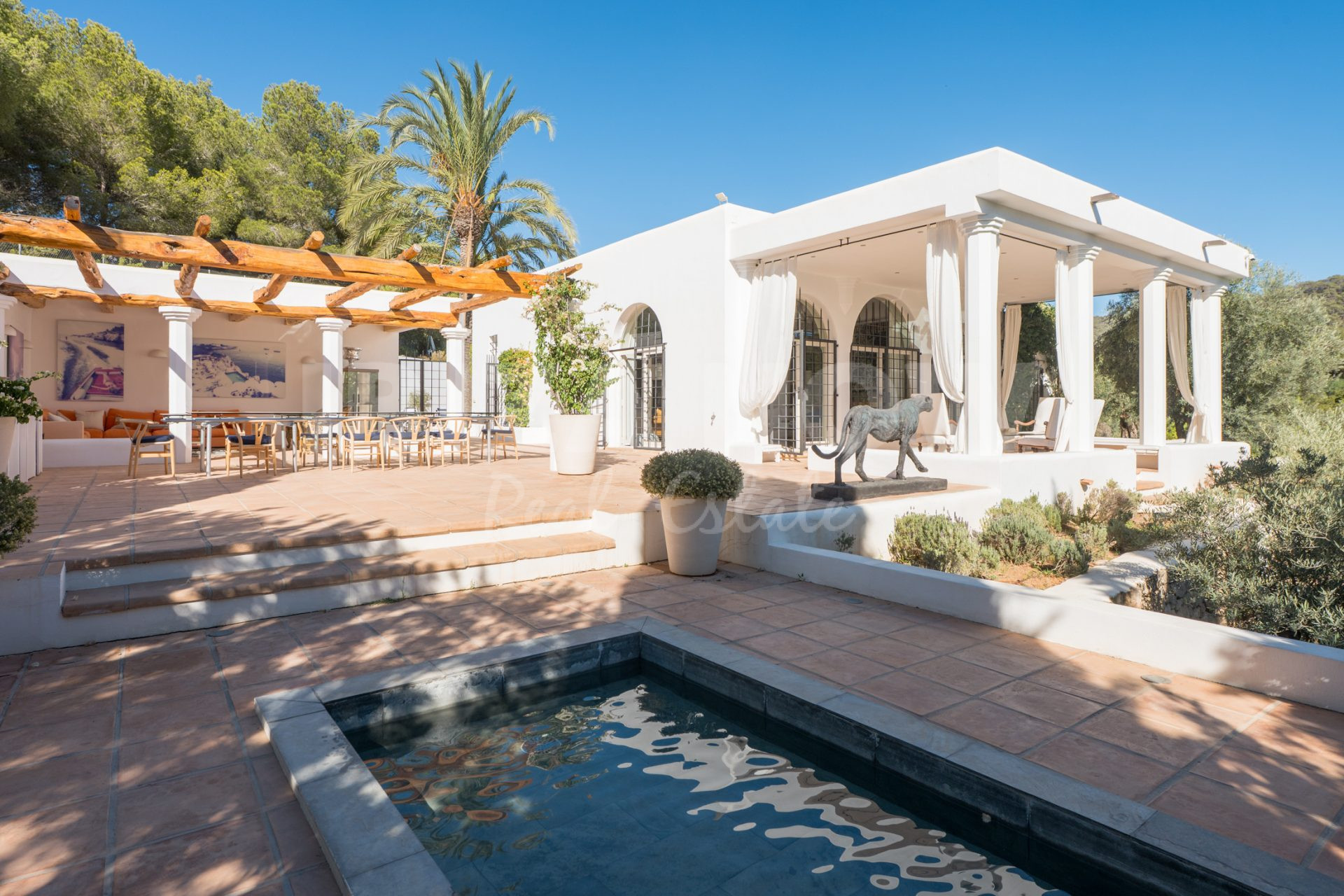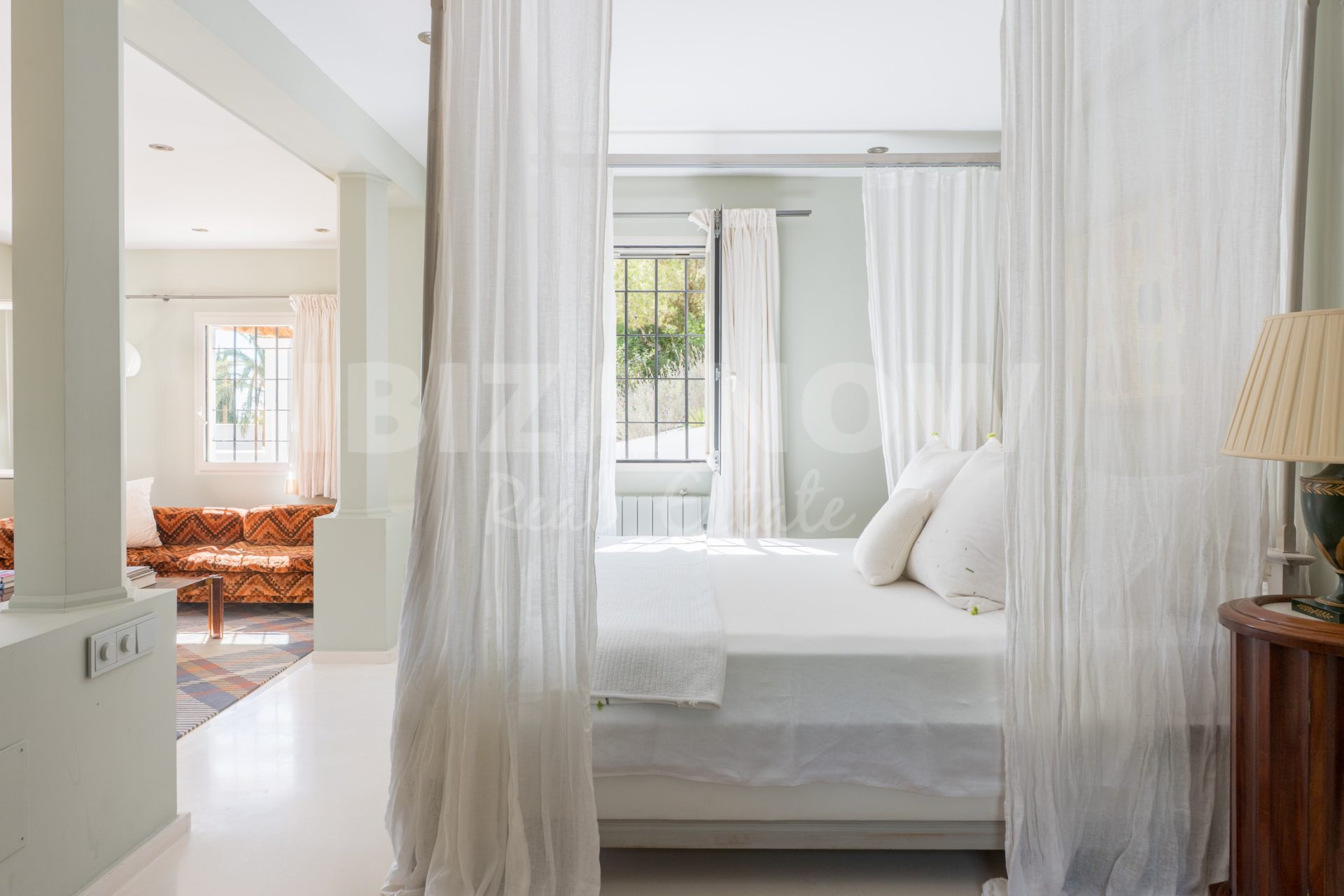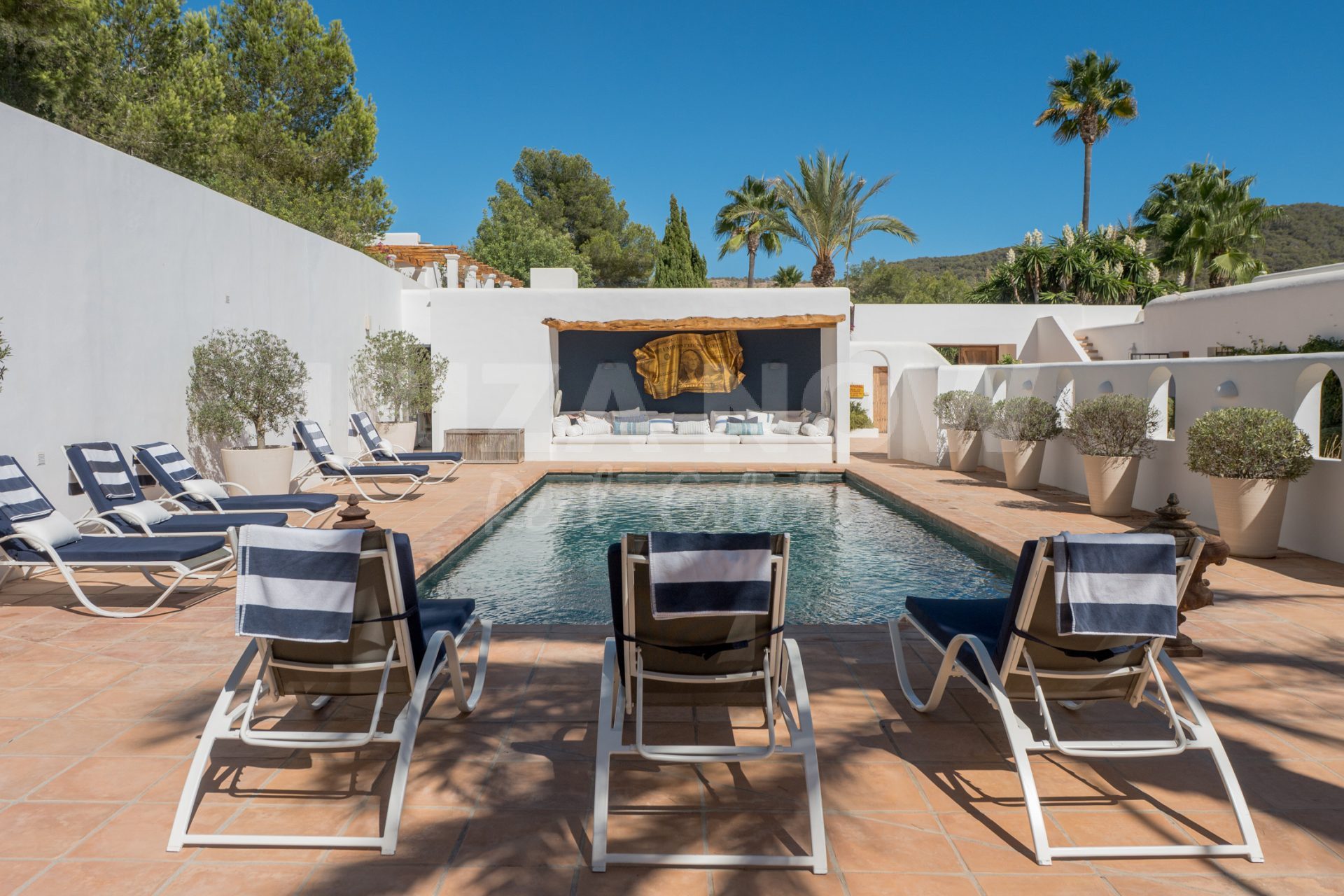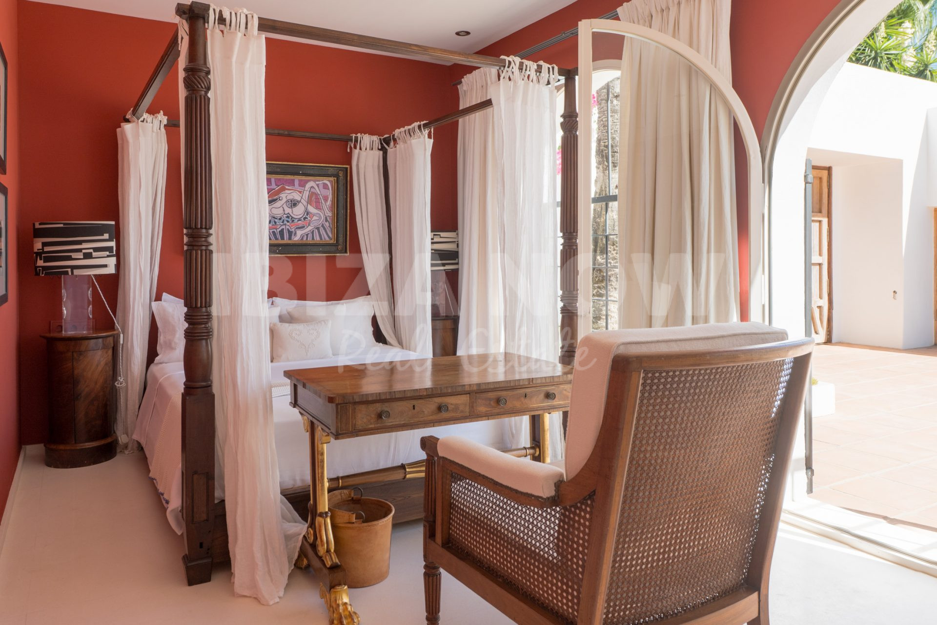 This villa is an original Blakstad-designed residence set on a gently elevated plot near Jesús. This exceptional country home combines the timeless elegance of traditional Ibicencan architecture with landscaped gardens and two private swimming pools, creating a serene retreat just minutes from Ibiza Town.