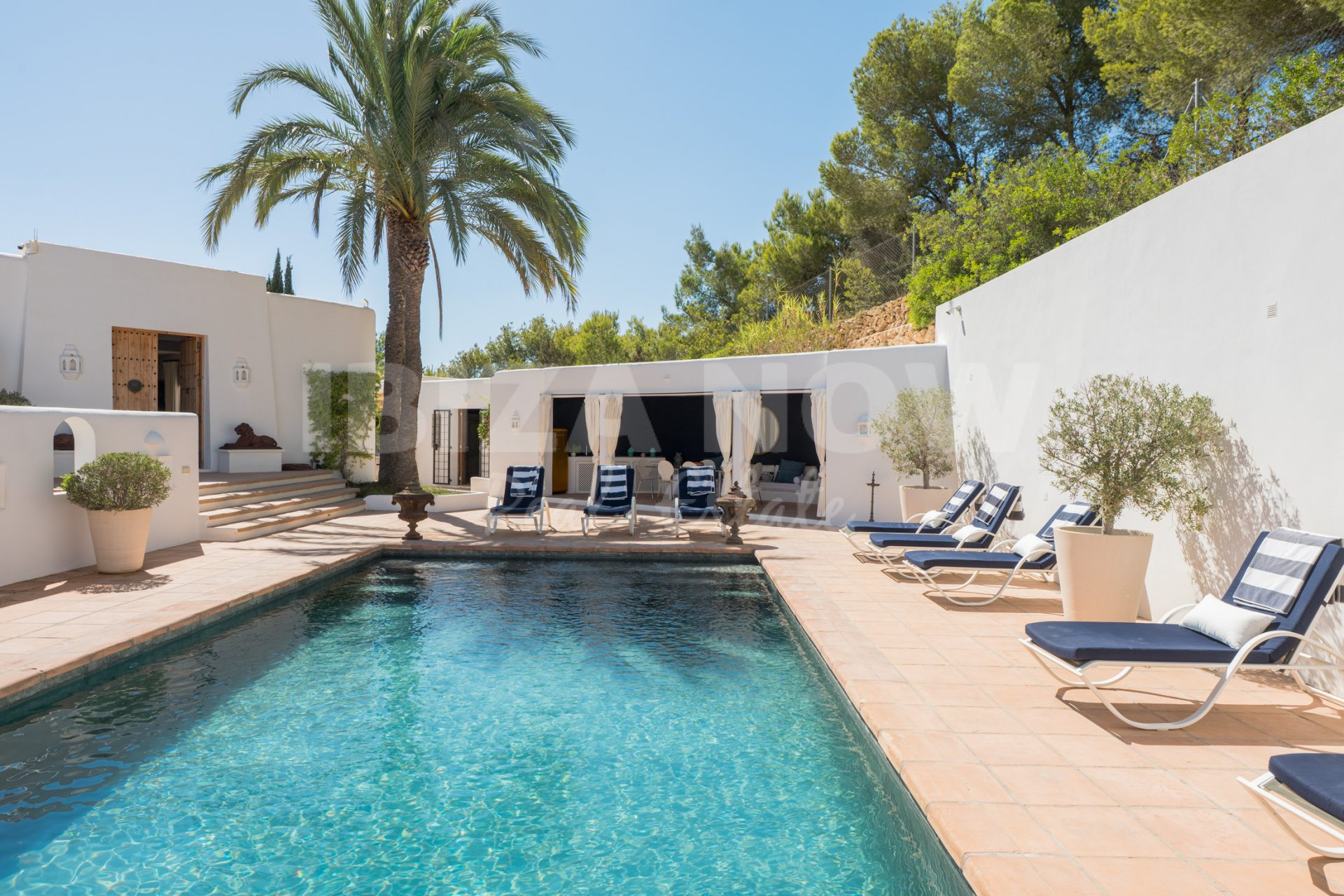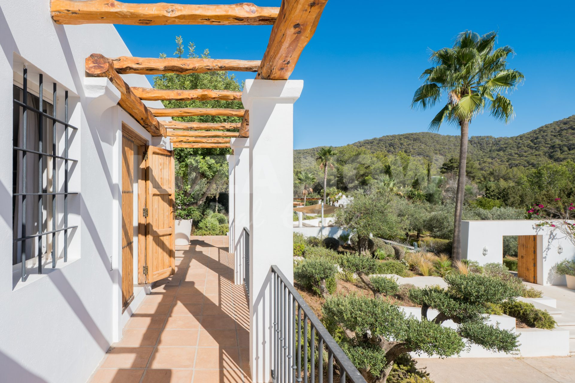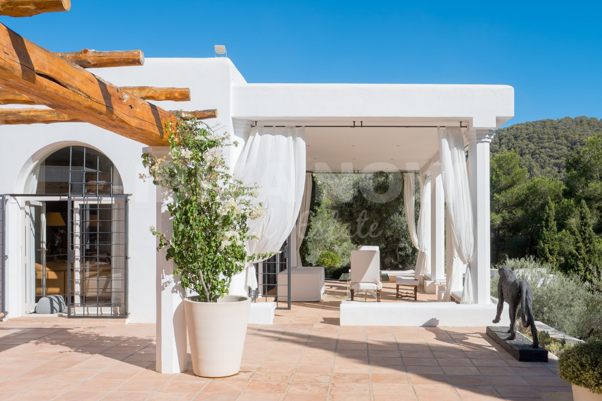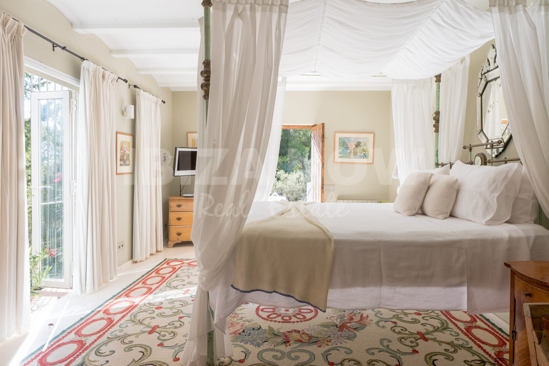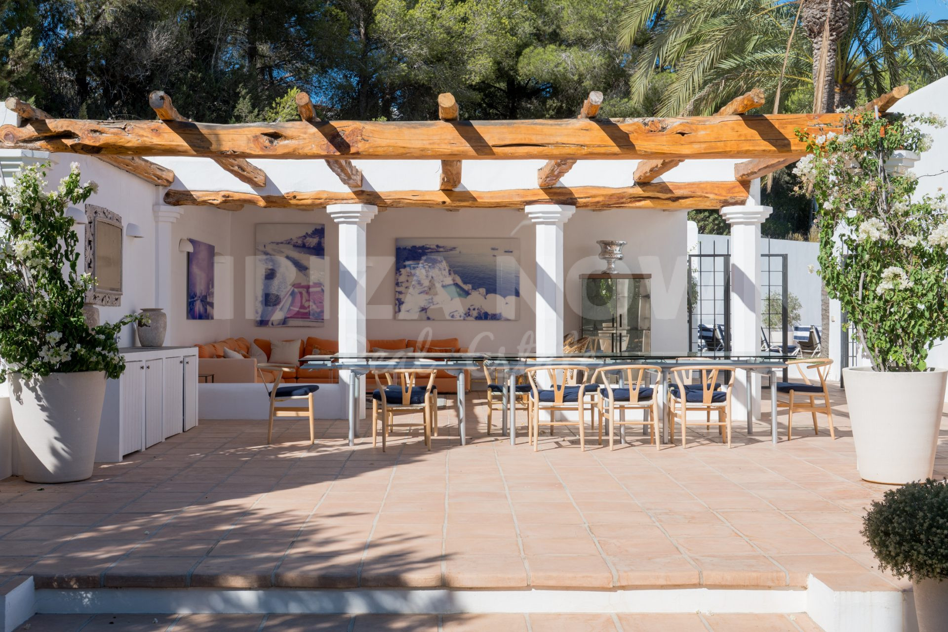 This villa is an original Blakstad-designed residence set on a gently elevated plot near Jesús. This exceptional country home combines the timeless elegance of traditional Ibicencan architecture with landscaped gardens and two private swimming pools, creating a serene retreat just minutes from Ibiza Town.