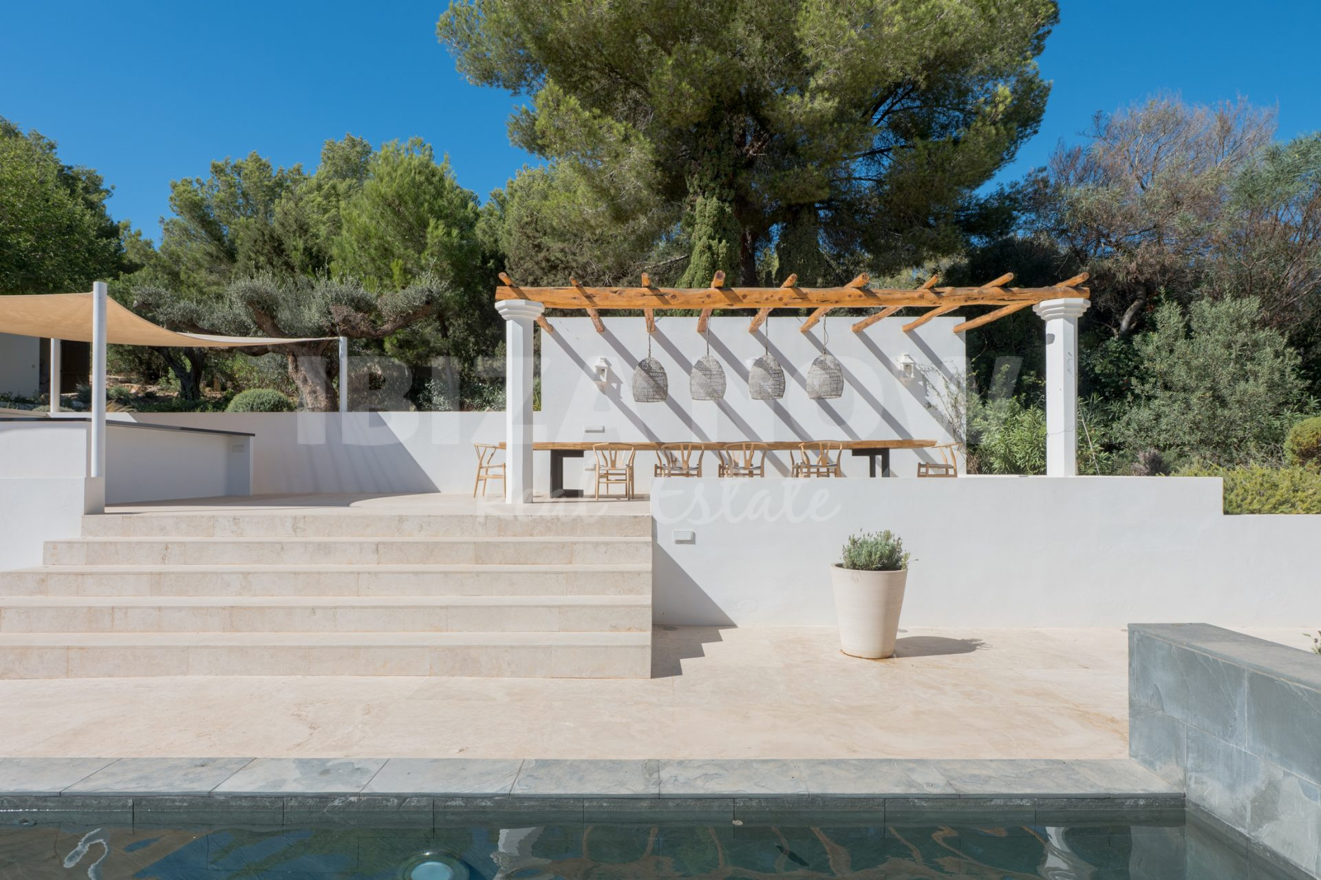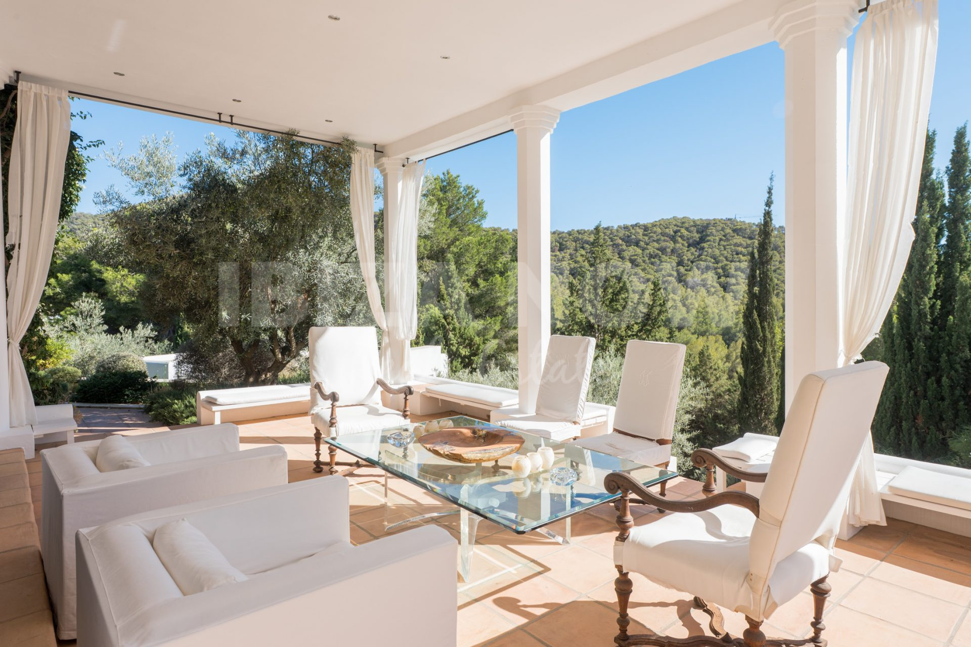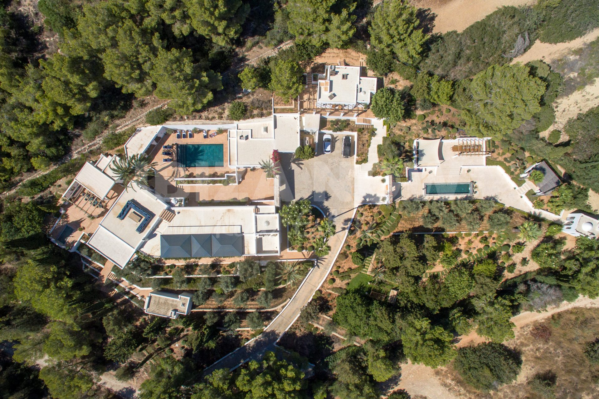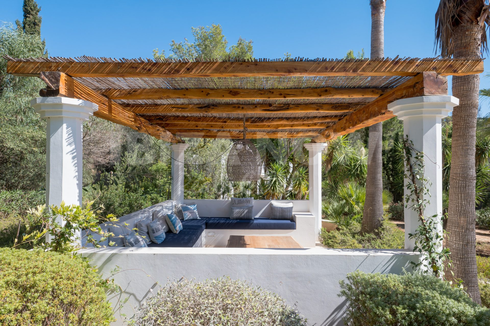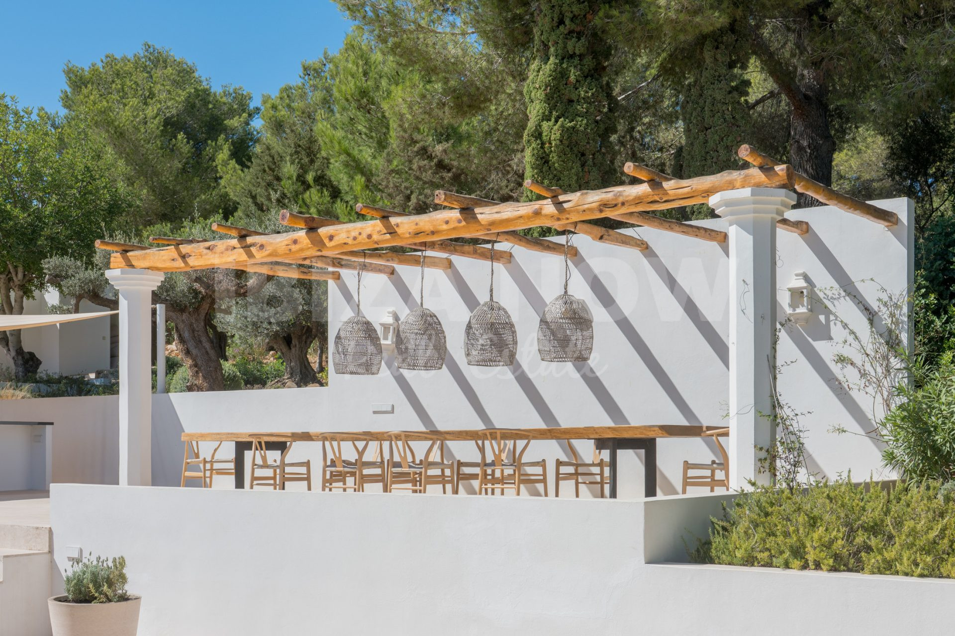 This villa is an original Blakstad-designed residence set on a gently elevated plot near Jesús. This exceptional country home combines the timeless elegance of traditional Ibicencan architecture with landscaped gardens and two private swimming pools, creating a serene retreat just minutes from Ibiza Town.