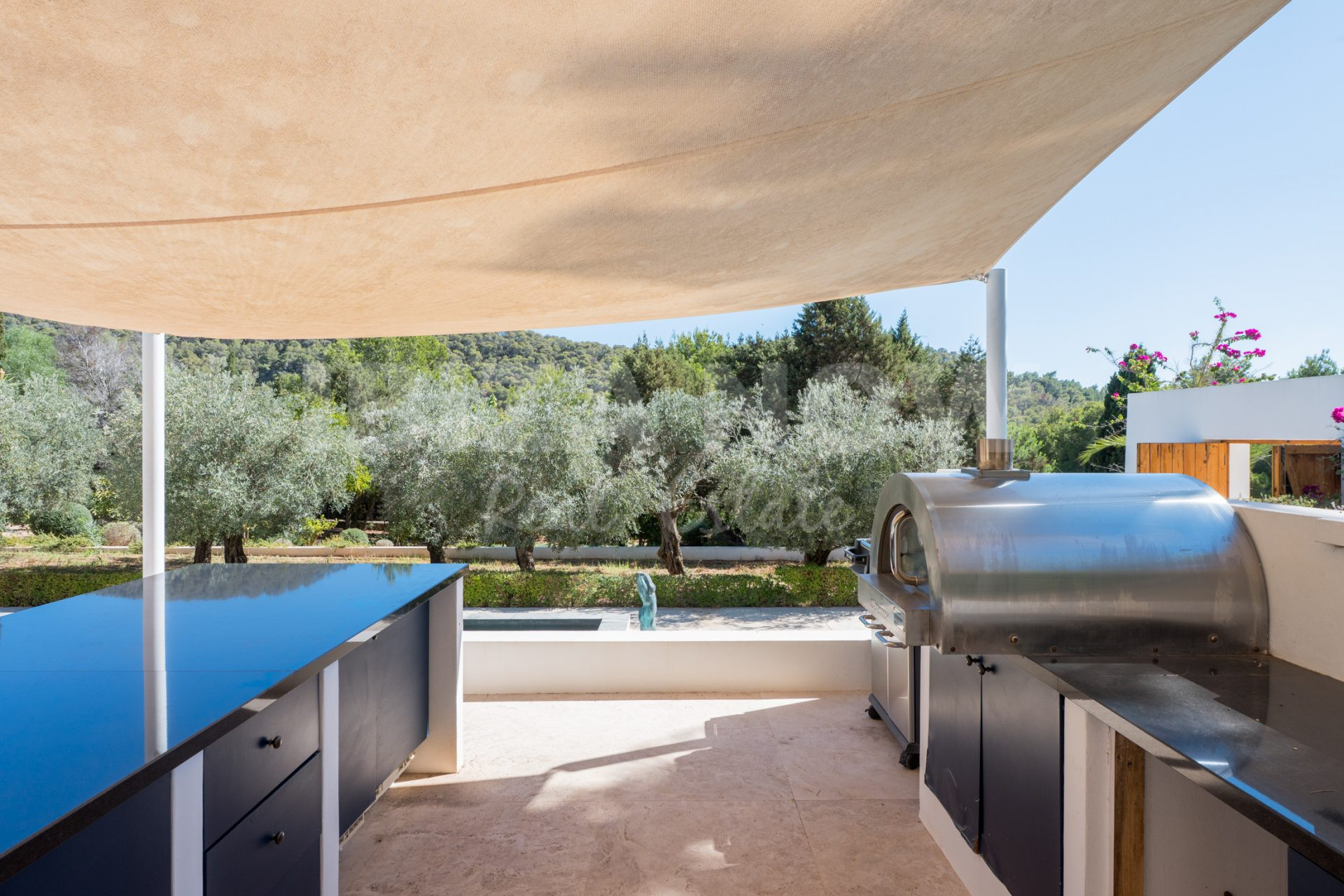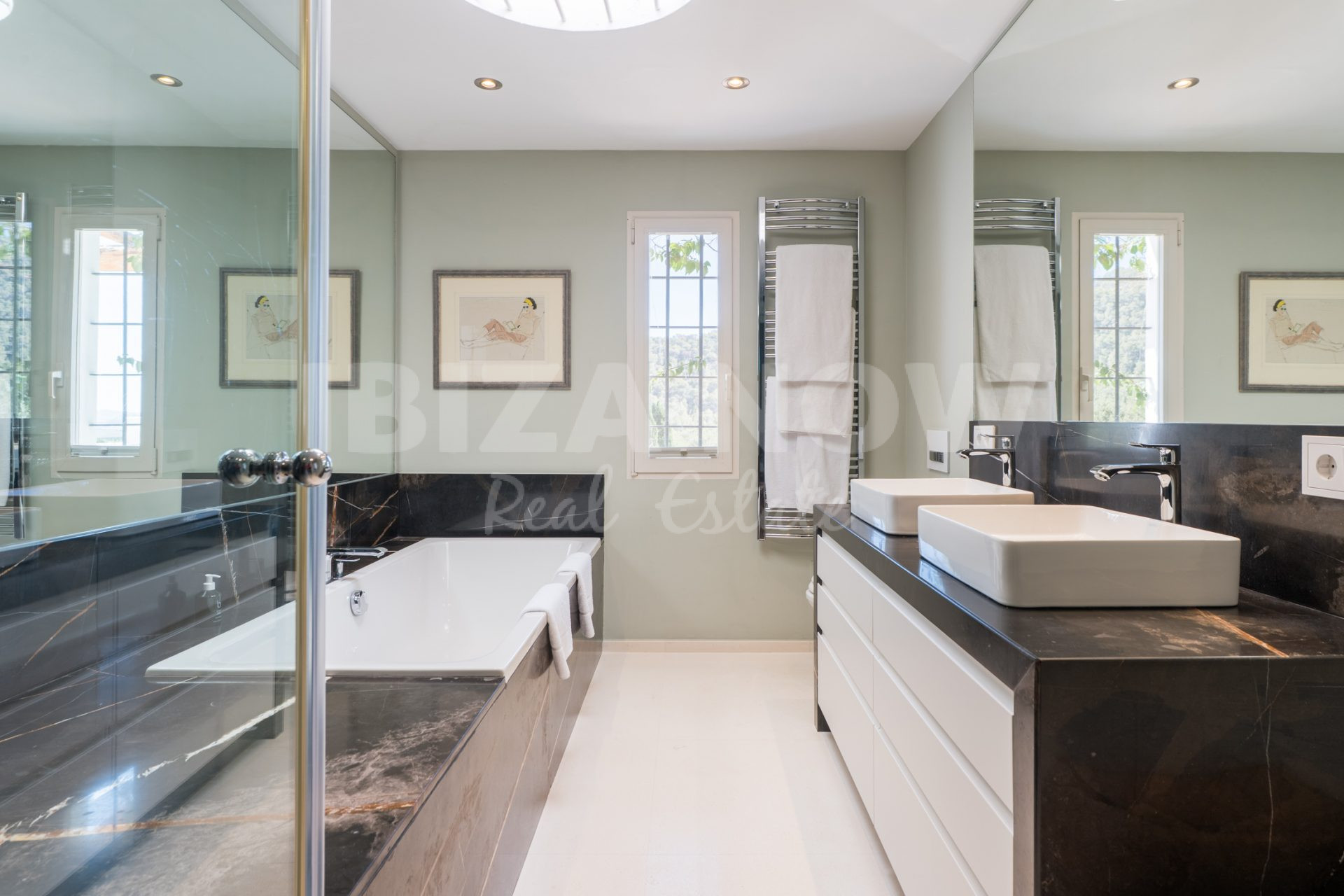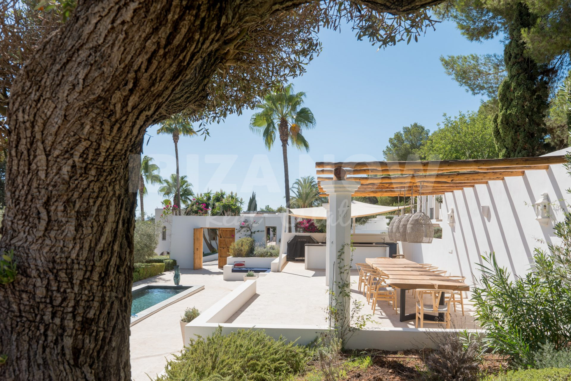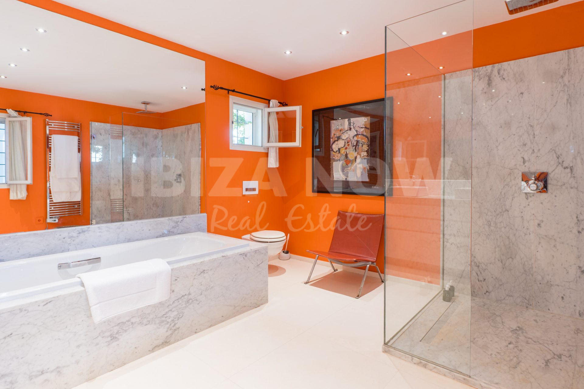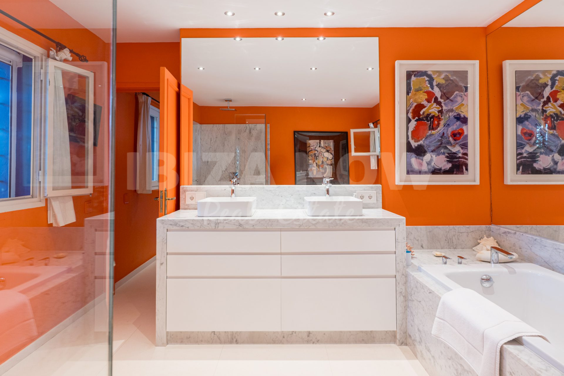 This villa is an original Blakstad-designed residence set on a gently elevated plot near Jesús. This exceptional country home combines the timeless elegance of traditional Ibicencan architecture with landscaped gardens and two private swimming pools, creating a serene retreat just minutes from Ibiza Town.