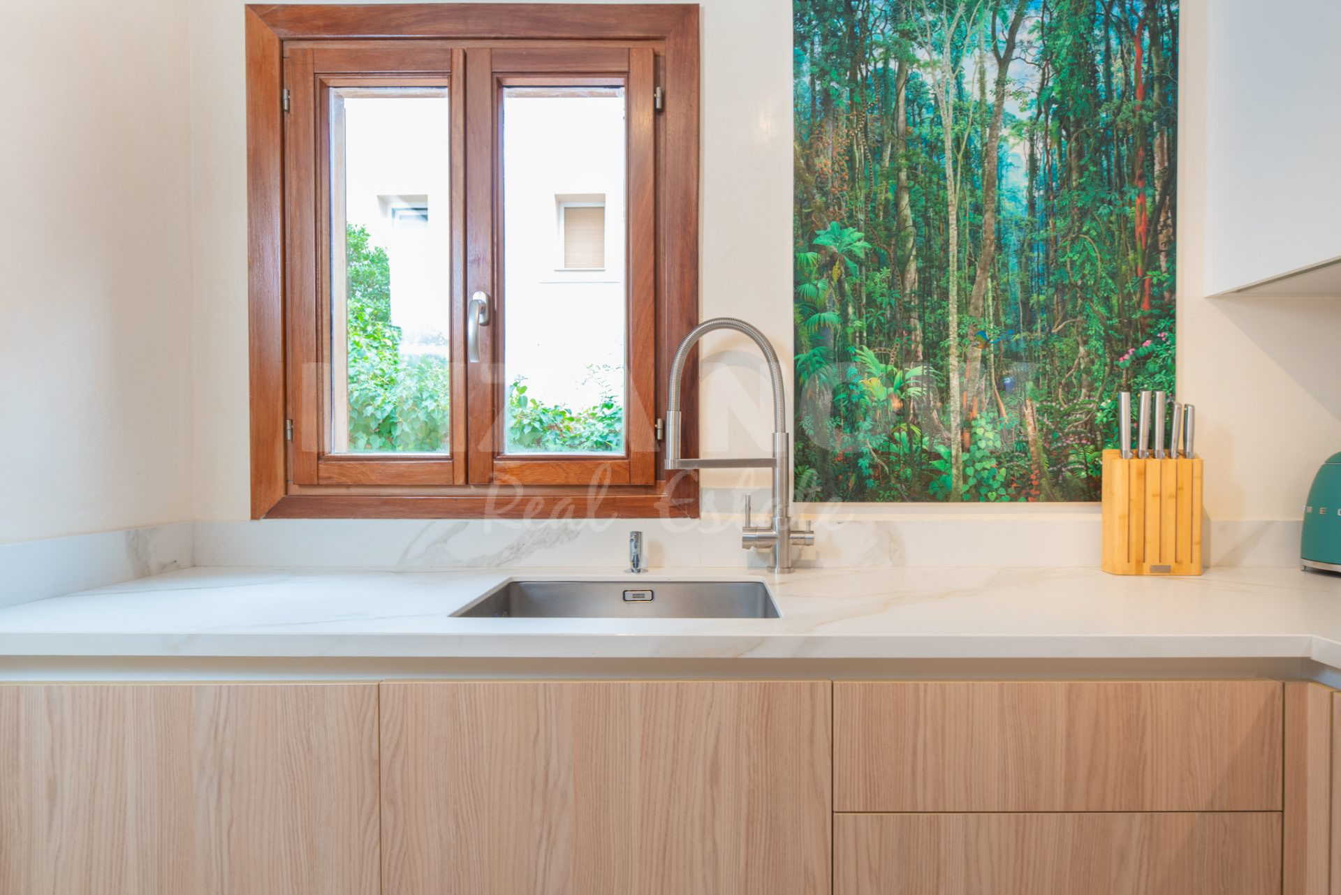 This beautiful ground-floor apartment spans a total of 129 m² and exudes warmth and elegance. The 57 m² interior has been designed with attention to detail, combining comfort with a refined and inviting aesthetic. The living room forms the heart of the home and opens onto the outdoor area through large sliding doors, creating a seamless flow between inside and out. The kitchen is both practical and elegant, integrated into the living space without dominating it.