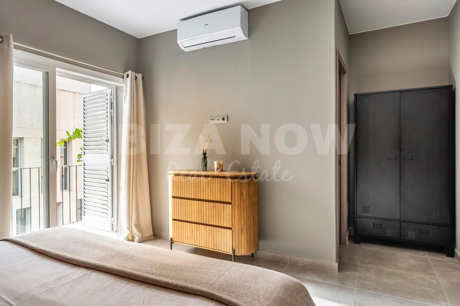 This fully furnished 119 m² apartment is located on the third floor of a quiet side street just off Avenida España in Ibiza Town. Recently renovated throughout with high-quality materials, new installations and a clean contemporary finish, it offers an exceptional level of comfort for a city-centre property. With four bedrooms — each with its own ensuite bathroom — this layout is rare and highly practical.