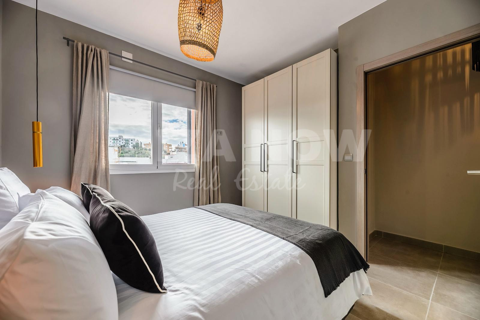 This recently renovated 112 m² apartment is located on the sixth floor in the heart of Ibiza Town. Thanks to the smart layout, the space feels larger than the surface suggests. A rare feature for this neighbourhood: four bedrooms, each with its own ensuite bathroom — ideal for those who value comfort and privacy.