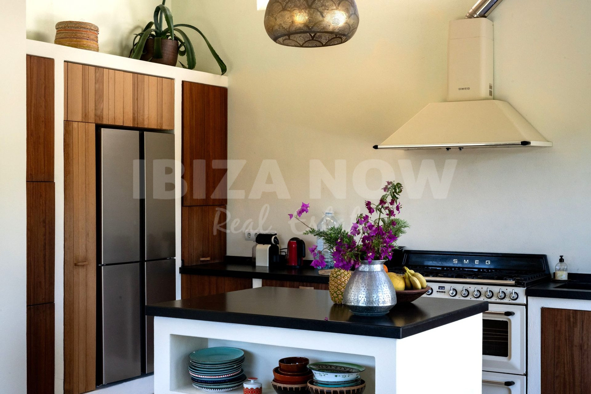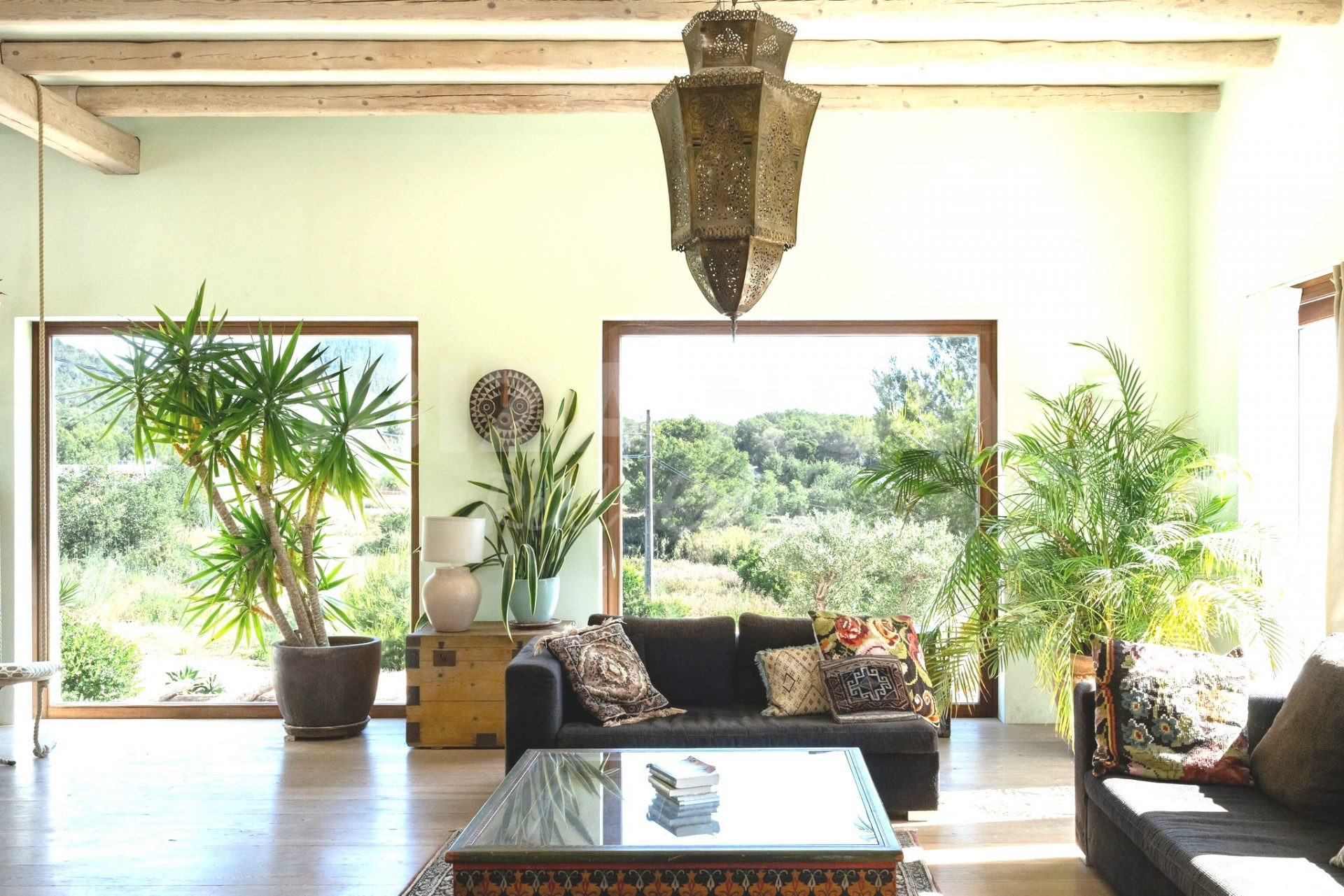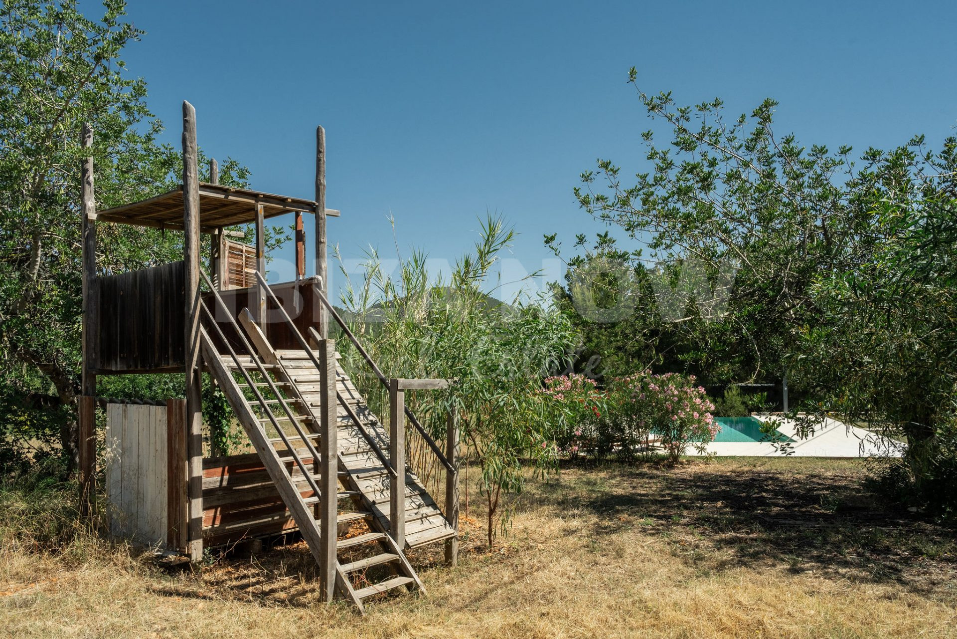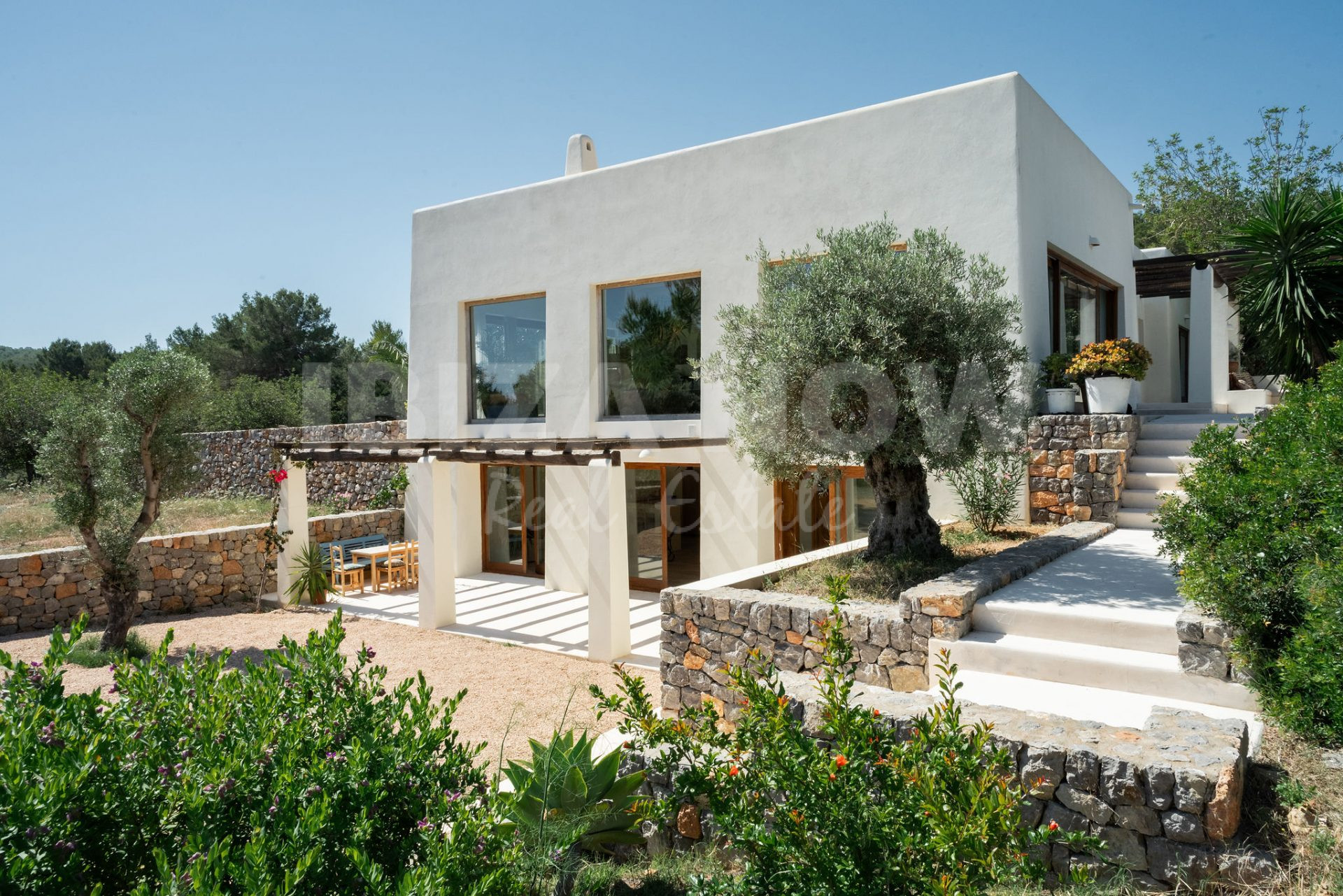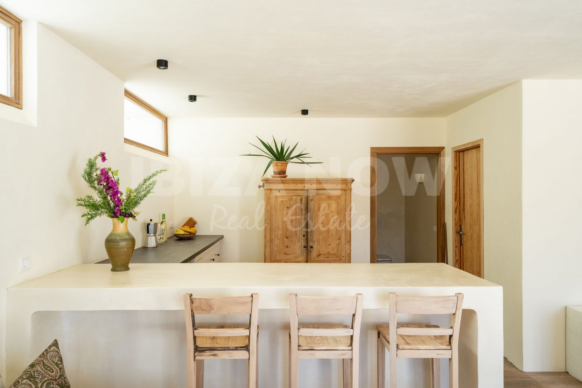 This beautifully renovated villa of 380 m² is set on a generous rustic plot of 15,000 m², just a 5-minute walk from Es Figueral beach. Fully refurbished in 2016, the property combines modern comfort with timeless charm, all on a single level.