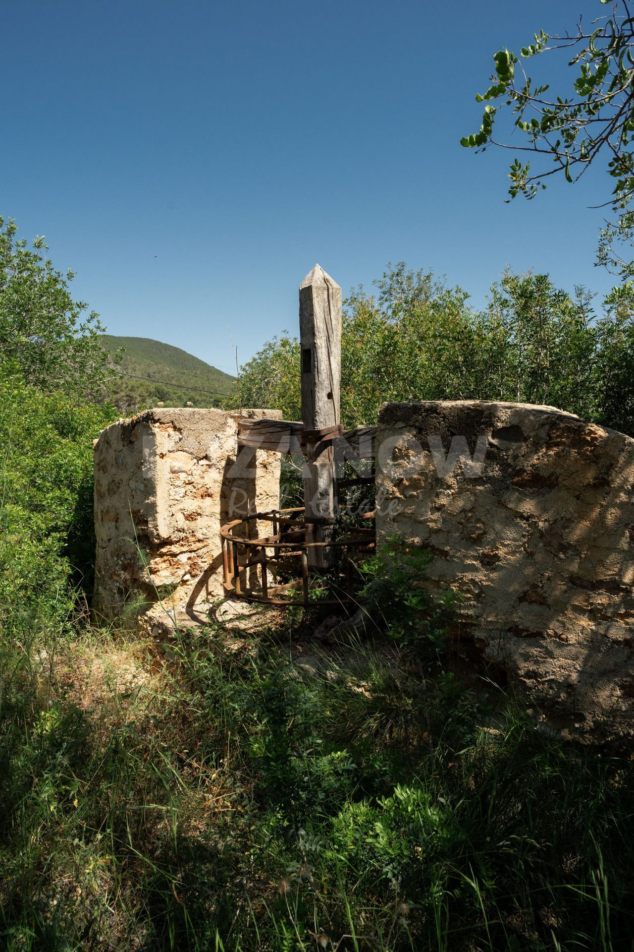 The flat, terraced land offers agricultural terrain suitable for horses, growing produce, or simply enjoying nature. A small ruin with a traditional balsa (water reservoir) could be restored into an independent office, studio, or guest room with its own natural pool. The northeast orientation ensures tranquility and total privacy, while the beach is just steps away.
