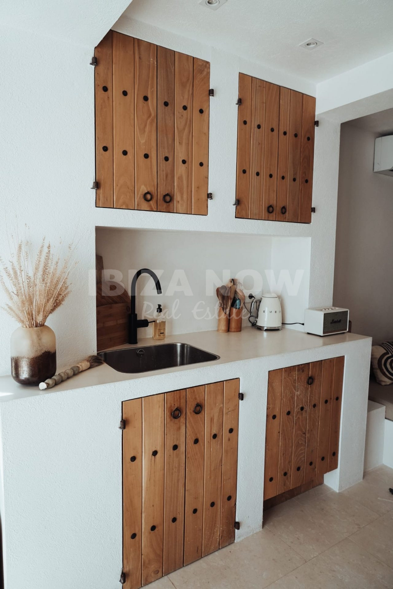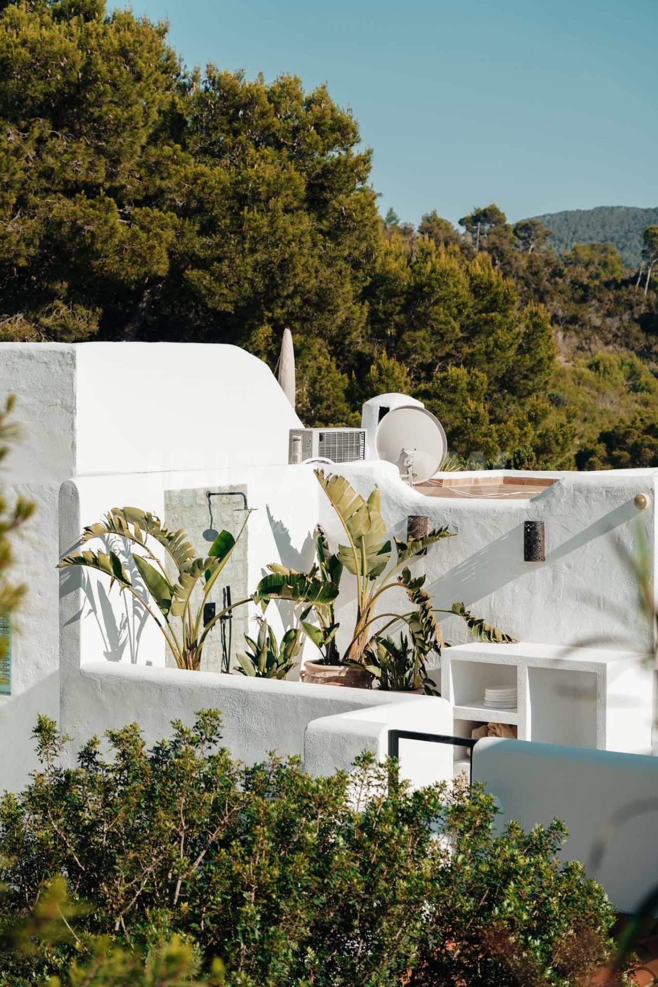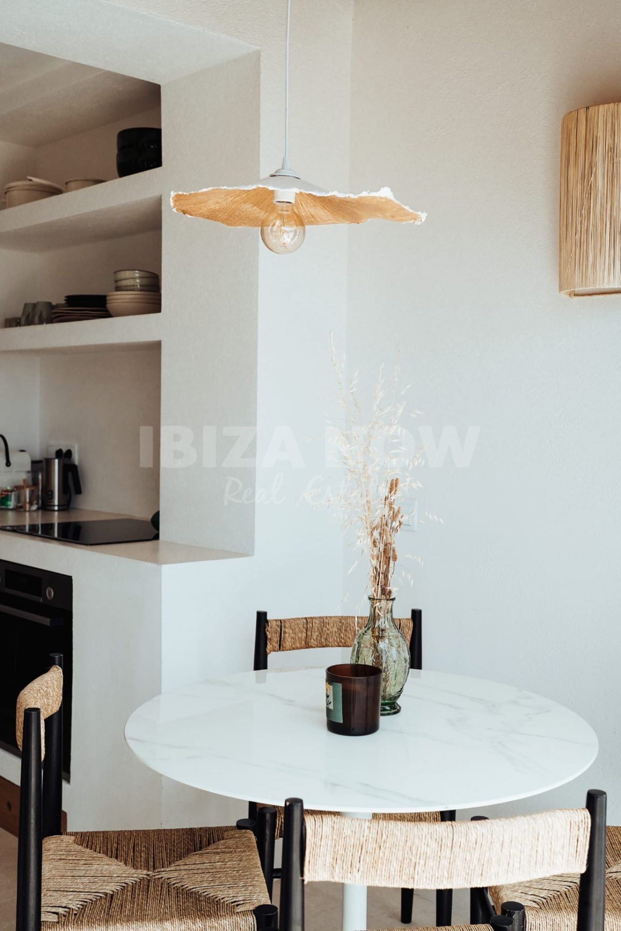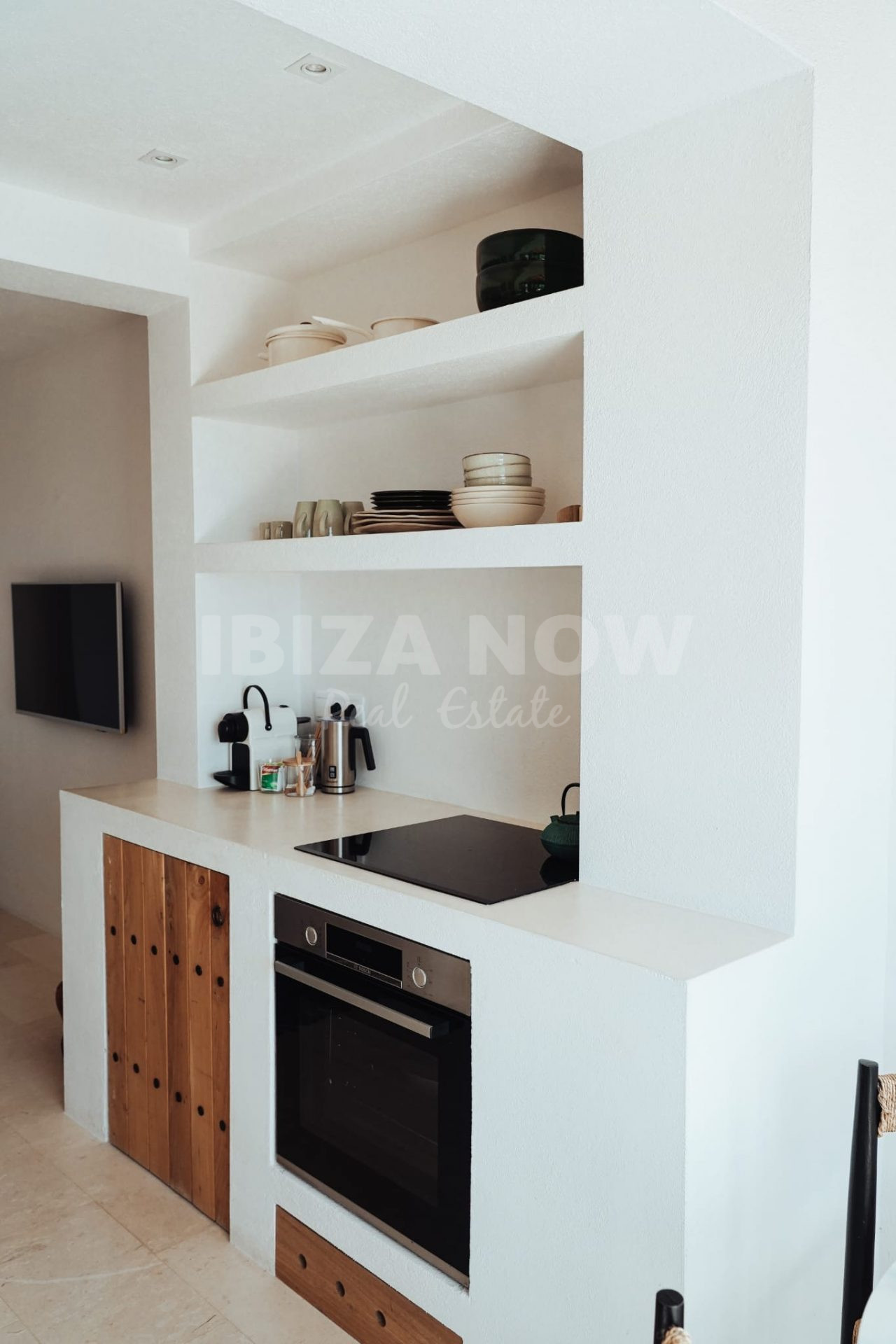 The outdoor spaces add real value to the apartment. Two private terraces offer different spots to sit, dine or unwind throughout the day. A fully equipped outdoor kitchen with dining table makes the apartment especially suitable for long evenings outside, with views towards the sea and Es Vedrà.