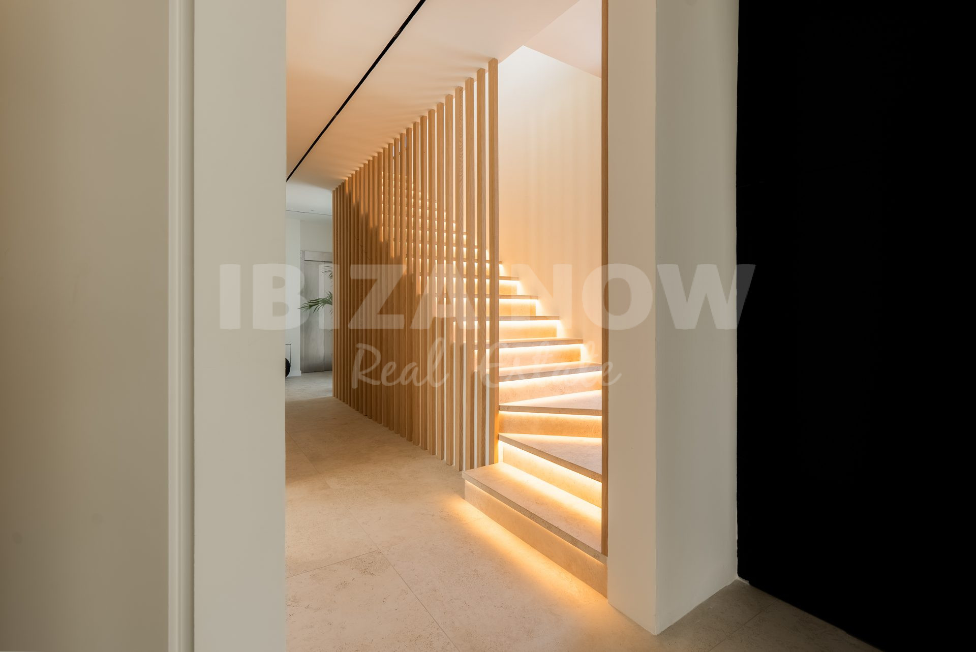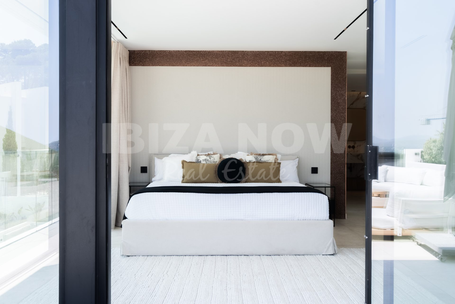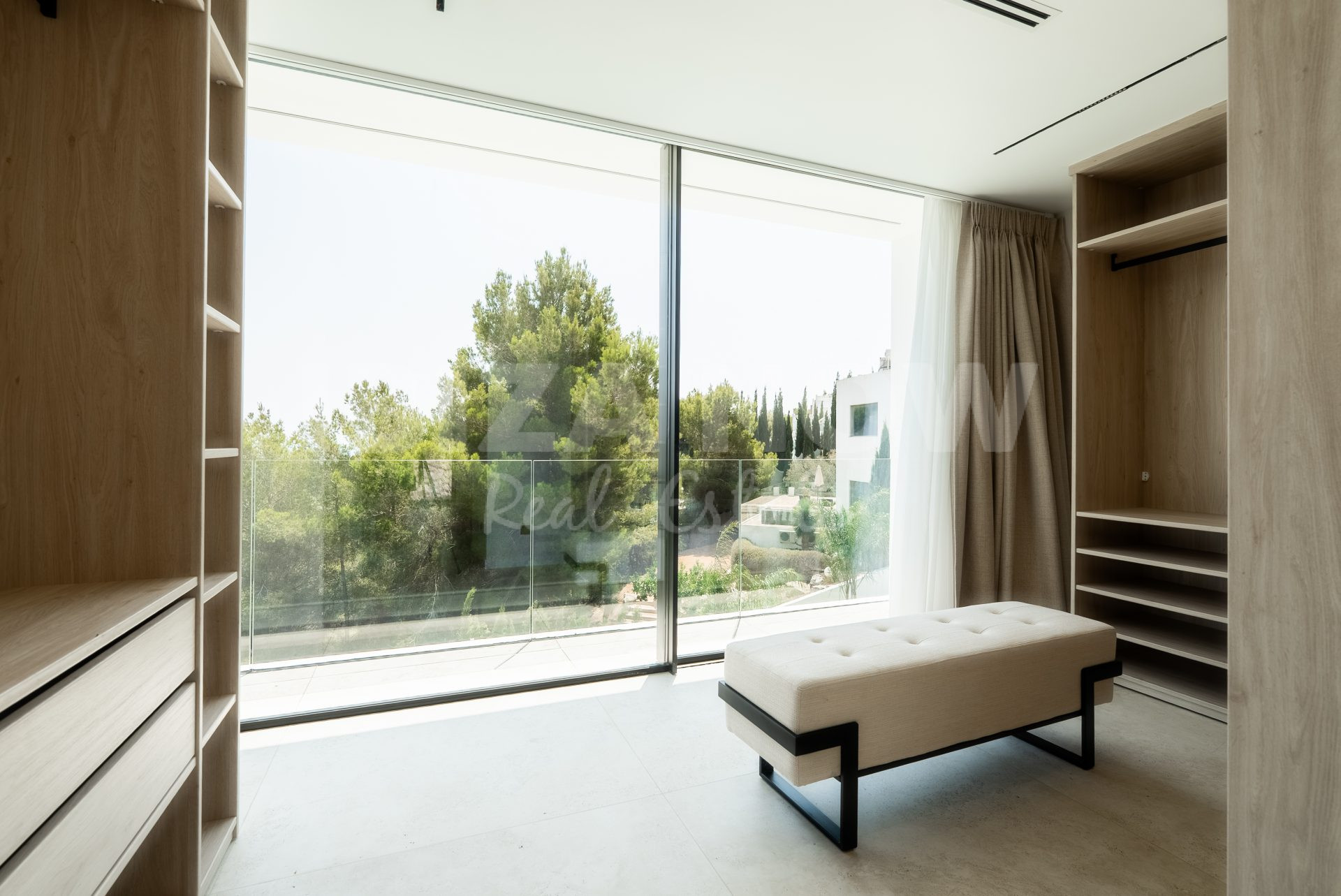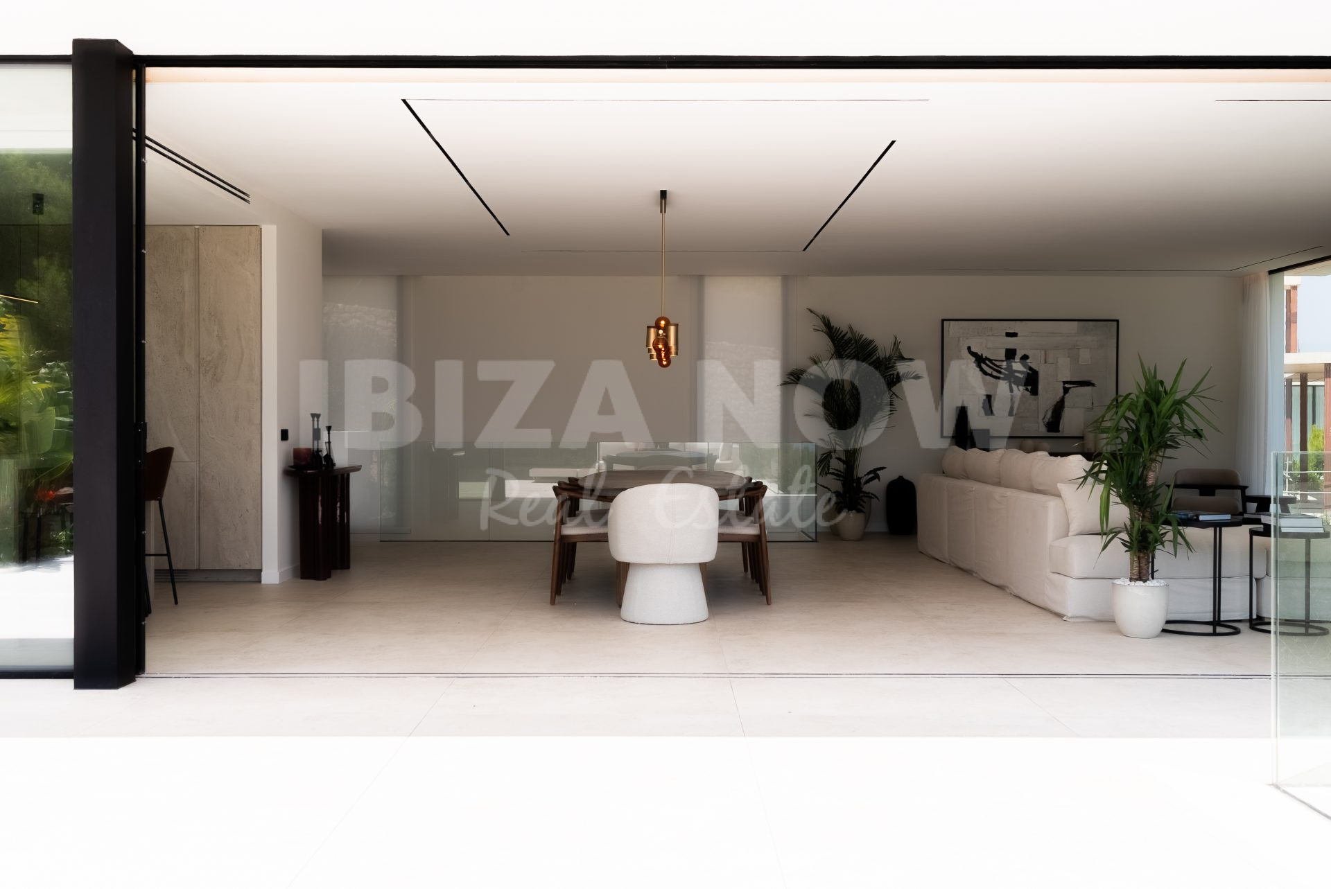 Gelegen in het beveiligde wooncomplex Roca Llisa, vlak bij de golfbaan en op korte rijafstand van Santa Eulalia en Ibiza-stad, bevindt zich deze exclusieve nieuwbouwvilla met 7 slaapkamers. De woning is recent opgeleverd, volledig nieuw, en klaar om direct te betrekken. Het perceel van ca. 1.565 m² is volledig omheind en biedt veel privacy.