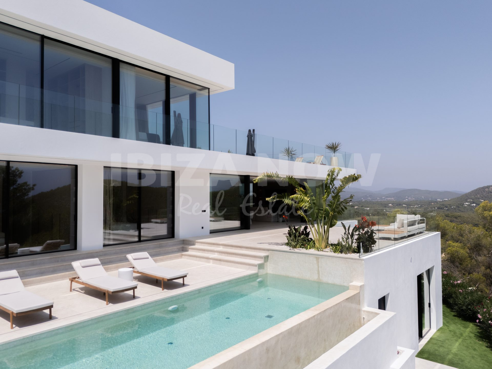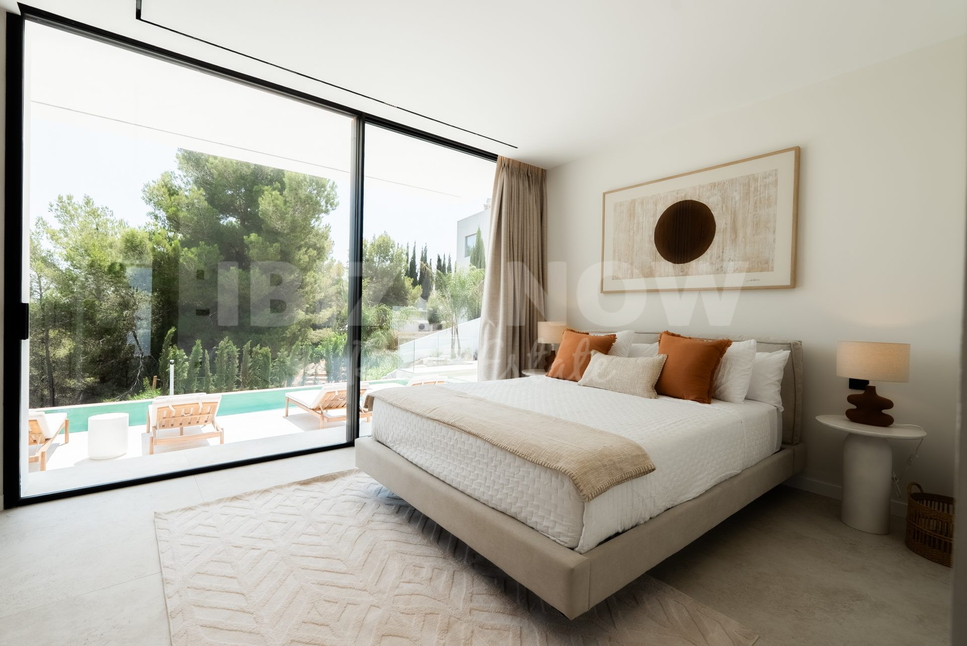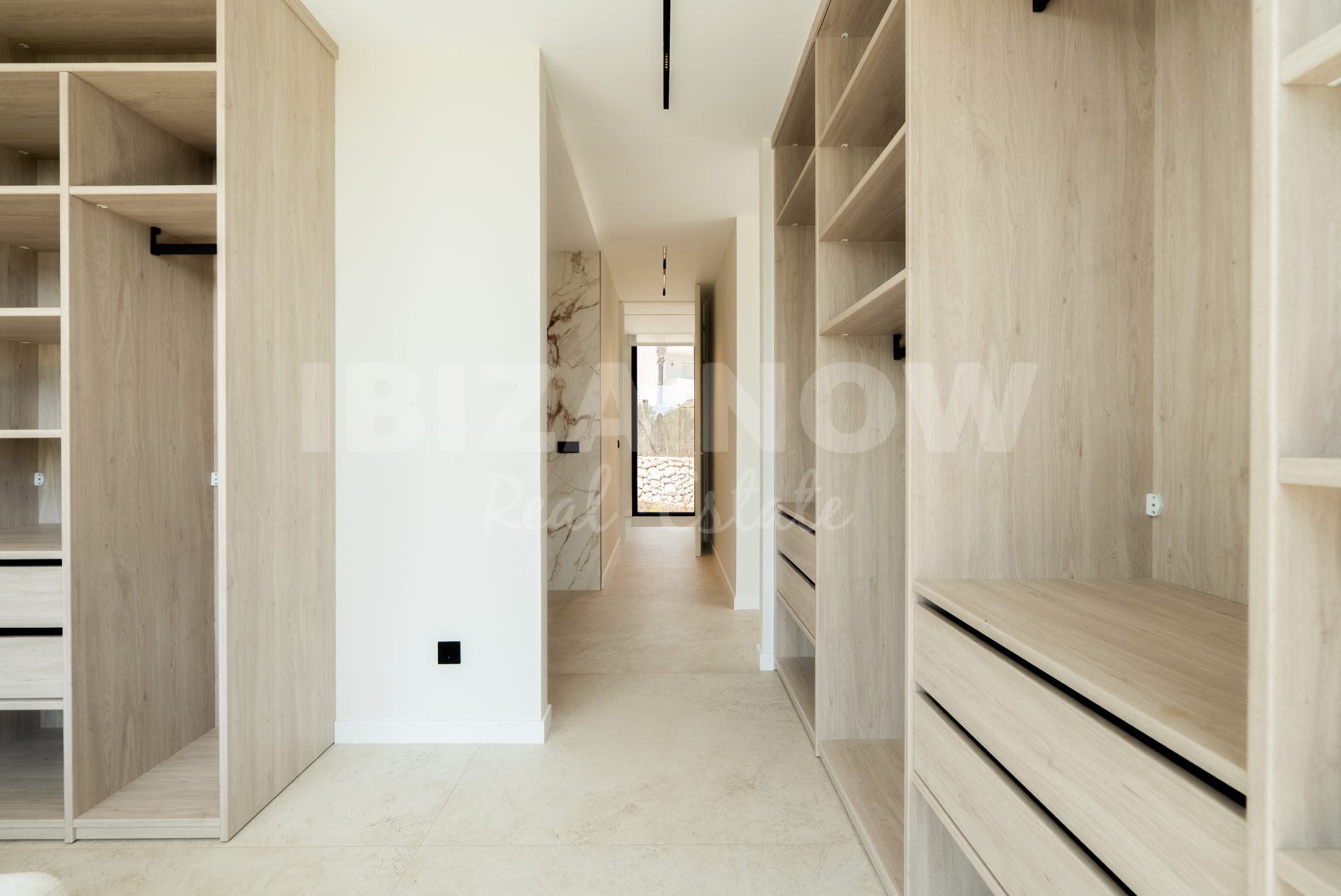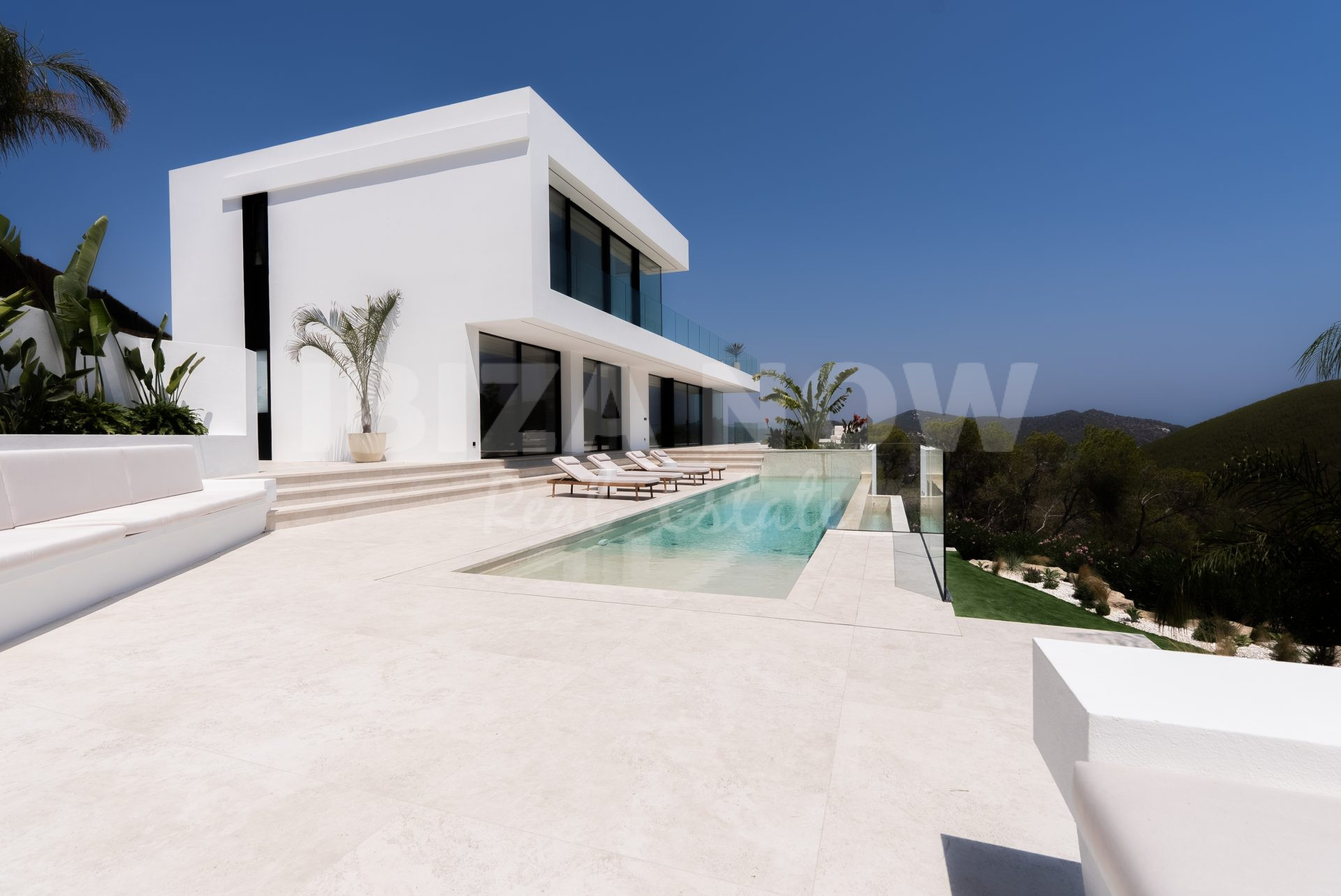 Gelegen in het beveiligde wooncomplex Roca Llisa, vlak bij de golfbaan en op korte rijafstand van Santa Eulalia en Ibiza-stad, bevindt zich deze exclusieve nieuwbouwvilla met 7 slaapkamers. De woning is recent opgeleverd, volledig nieuw, en klaar om direct te betrekken. Het perceel van ca. 1.565 m² is volledig omheind en biedt veel privacy.