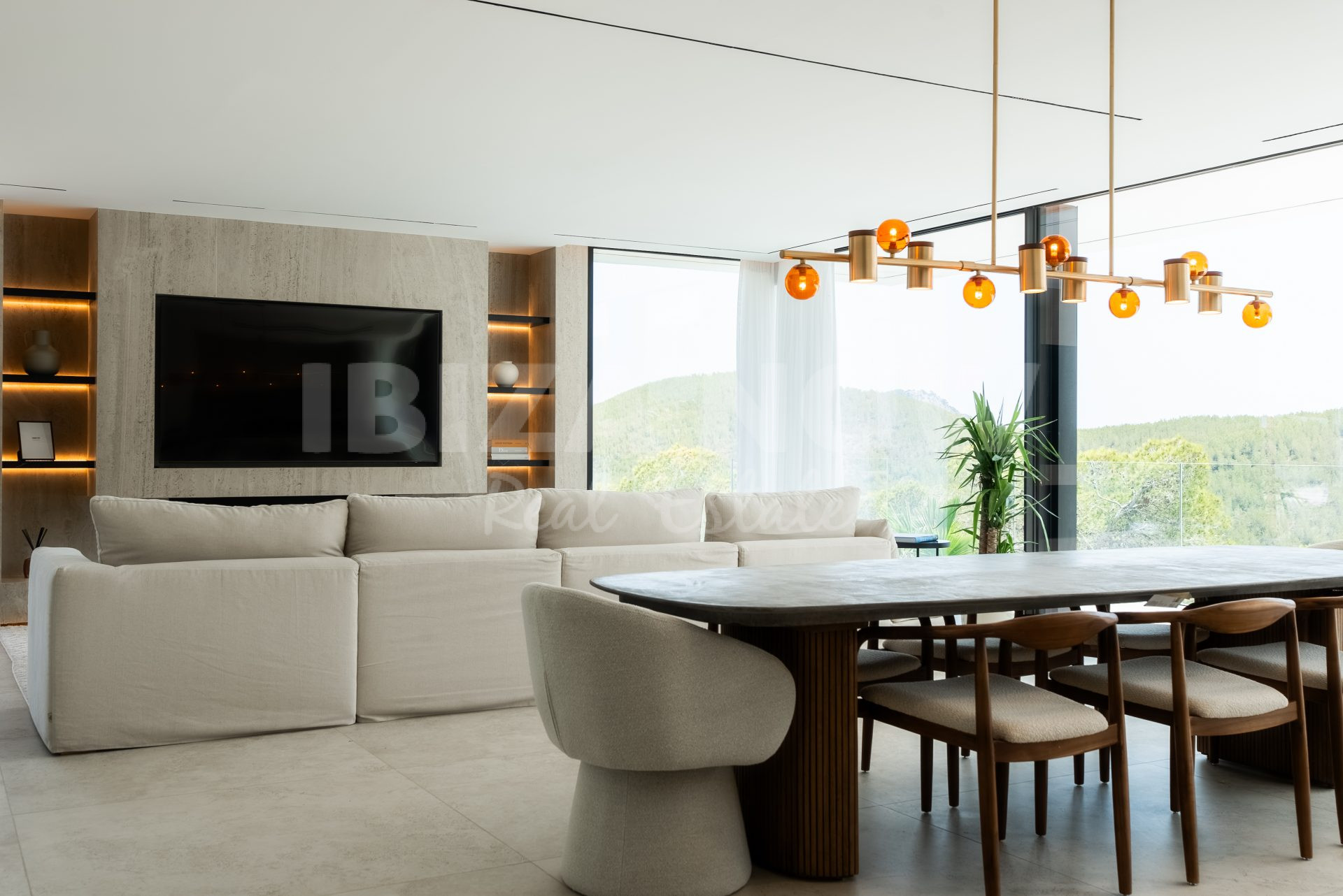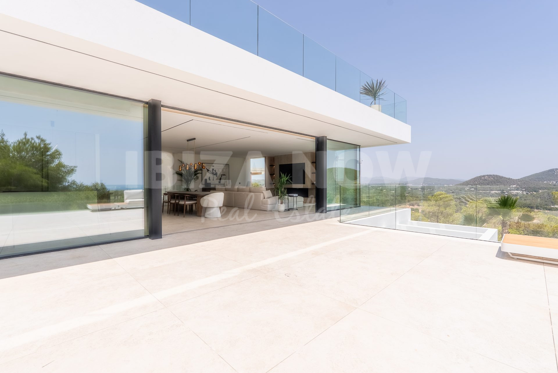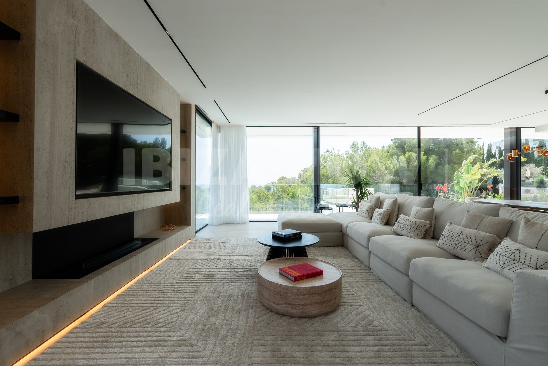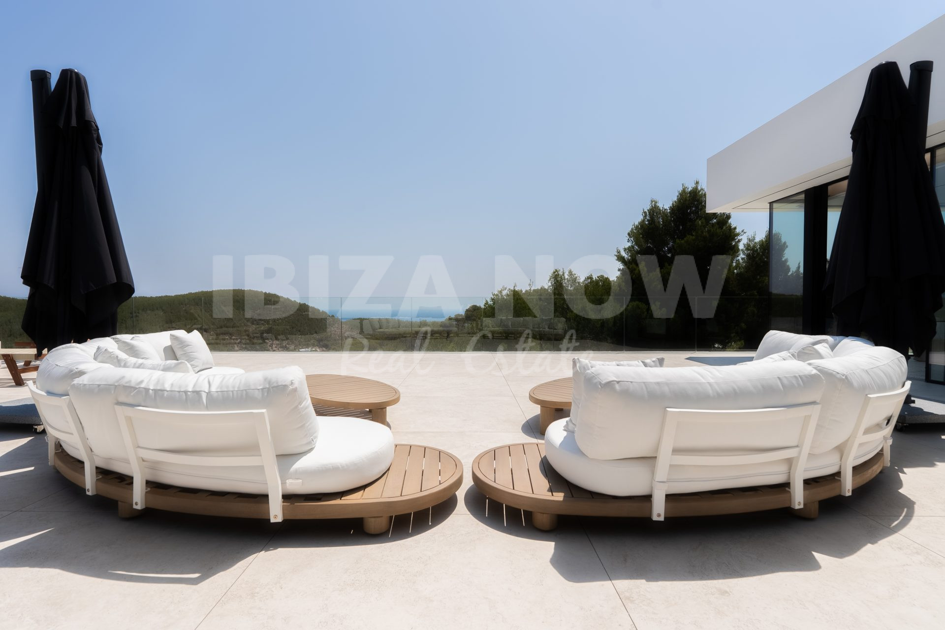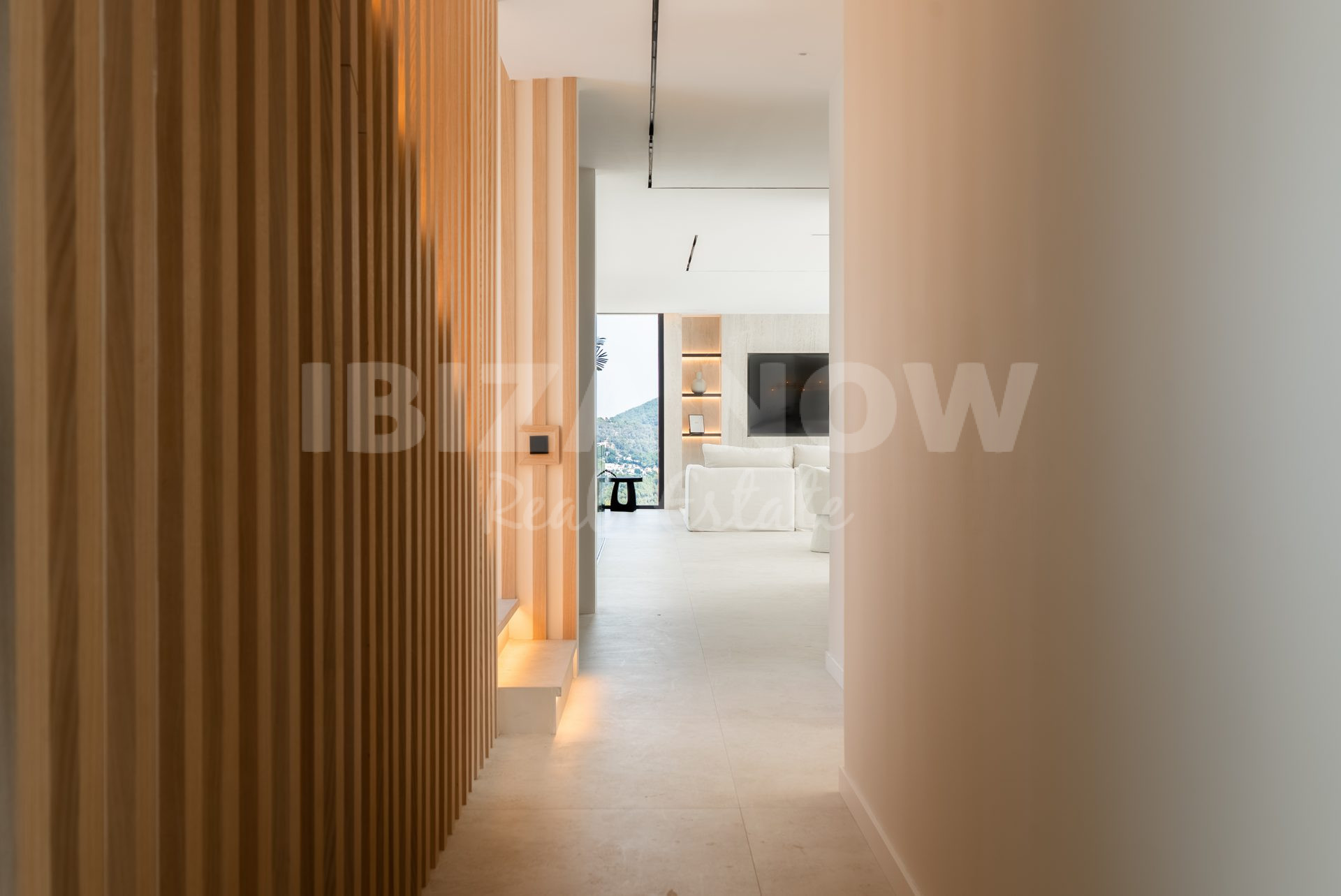Gelegen in het beveiligde wooncomplex Roca Llisa, vlak bij de golfbaan en op korte rijafstand van Santa Eulalia en Ibiza-stad, bevindt zich deze exclusieve nieuwbouwvilla met 7 slaapkamers. De woning is recent opgeleverd, volledig nieuw, en klaar om direct te betrekken. Het perceel van ca. 1.565 m² is volledig omheind en biedt veel privacy.
