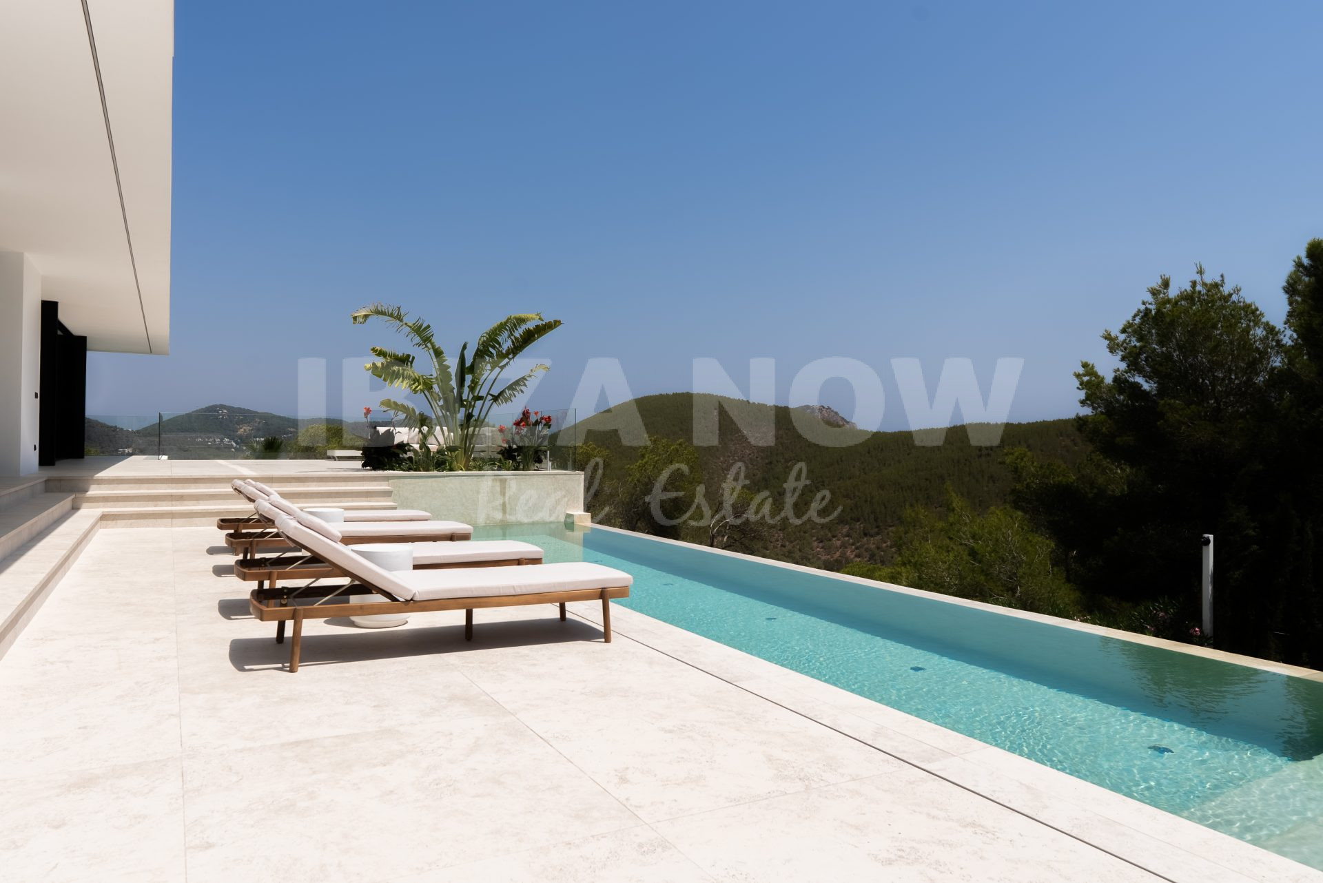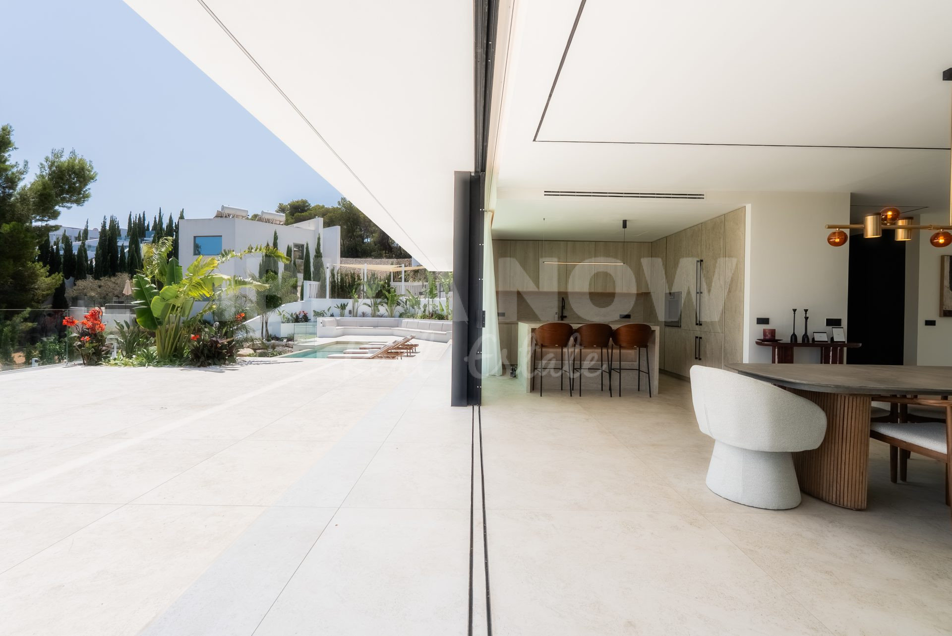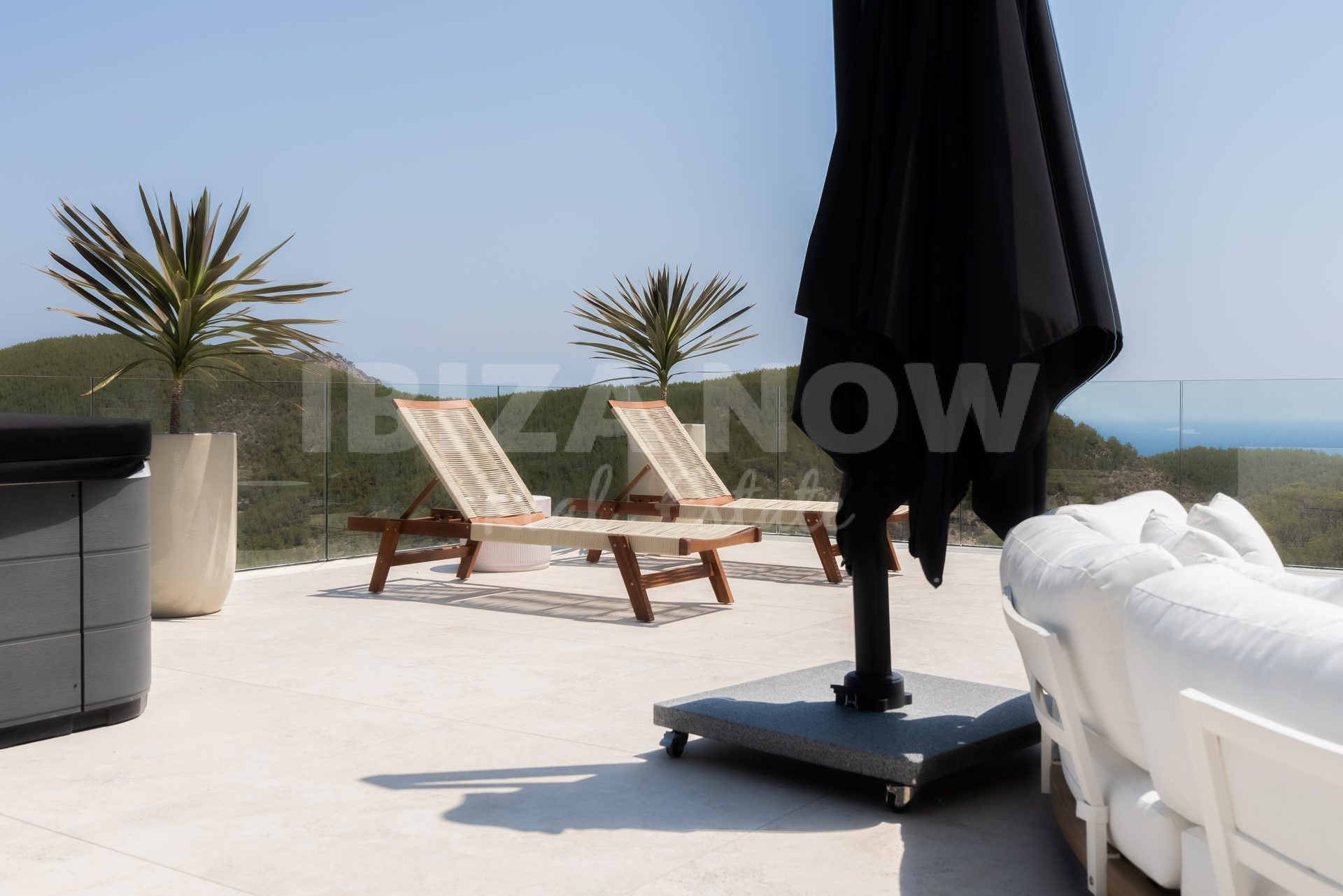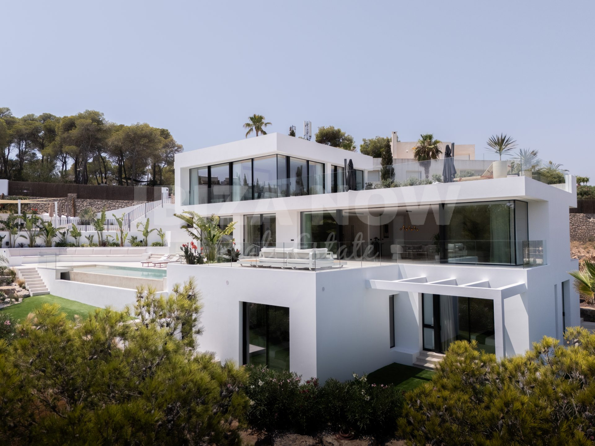 Gelegen in het beveiligde wooncomplex Roca Llisa, vlak bij de golfbaan en op korte rijafstand van Santa Eulalia en Ibiza-stad, bevindt zich deze exclusieve nieuwbouwvilla met 7 slaapkamers. De woning is recent opgeleverd, volledig nieuw, en klaar om direct te betrekken. Het perceel van ca. 1.565 m² is volledig omheind en biedt veel privacy.