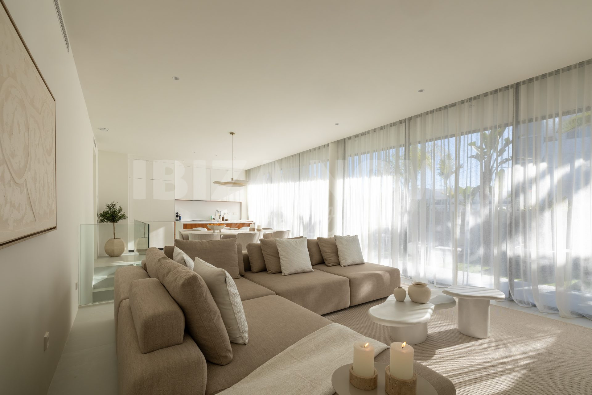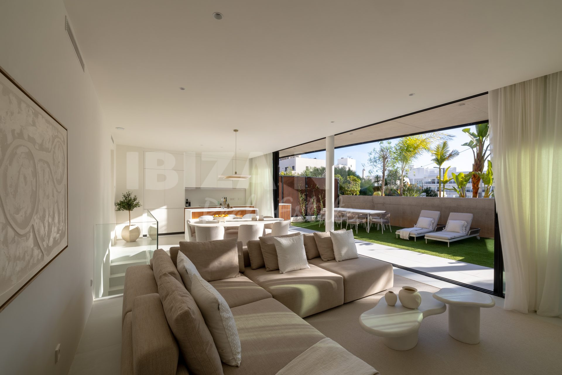 Gelegen in een van de meest gewilde gebieden van Ibiza, biedt deze begane grond woning een eigentijdse woonervaring op slechts 100 meter van Talamanca Beach. De nabijheid van Marina Botafoch en Ibiza-stad zorgt voor gemakkelijke toegang tot hoogwaardige restaurants, luxe boetieks en het bruisende nachtleven, terwijl de woning een oase van rust en privacy blijft.